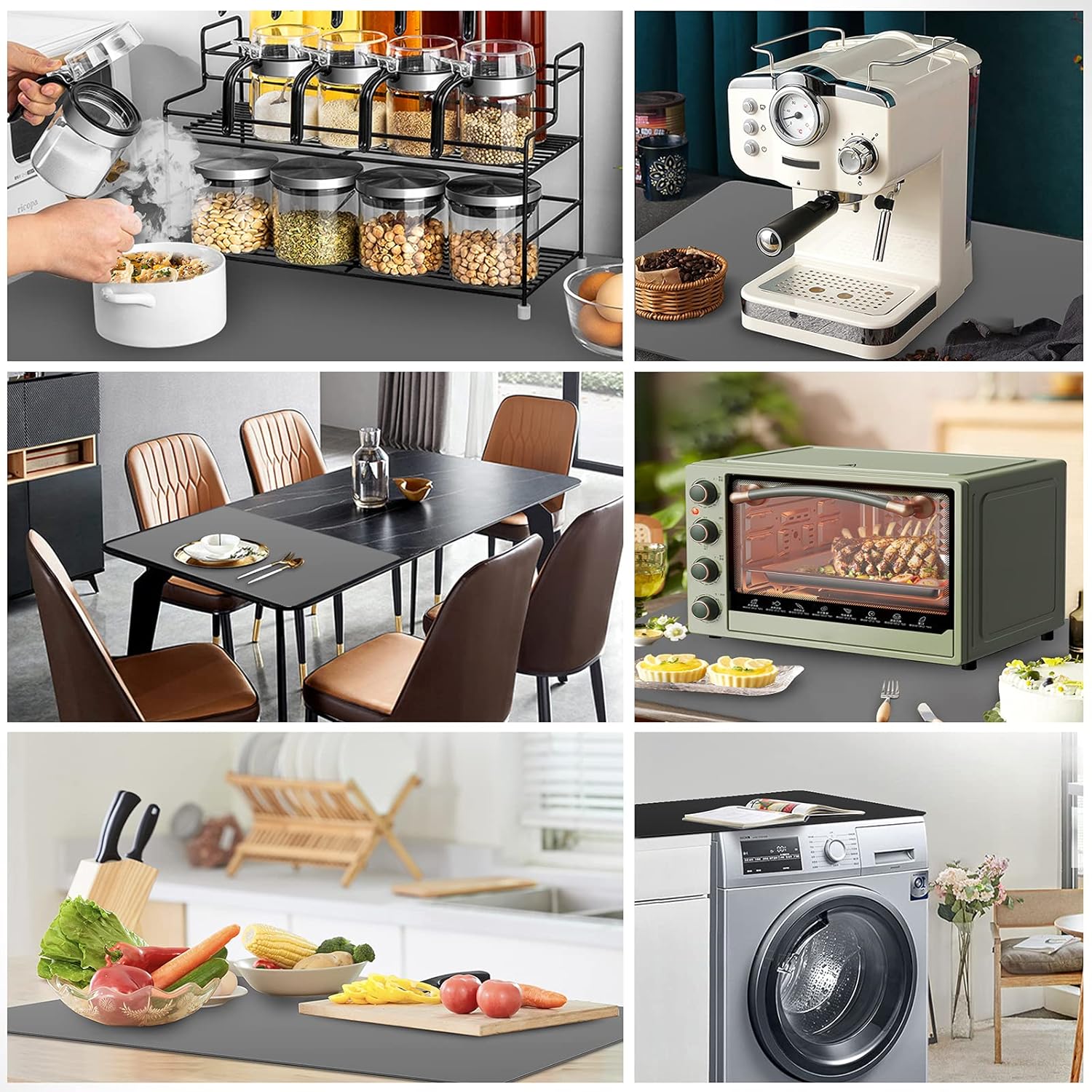 - You Canโt Go Wrong with It: This placemat can solve multiple problems. Great for catching messes. Protect counters from spills, scratches, grease, coffee stains, or damage. Place hot items of all sizes directly on the mat without having to dig through the drawer for a hot pad and no more need for trivets. Reduce the noises made by appliances. No need to worry about items slipping off the countertop. Tools will keep in place. Even if you are rolling dough hard on it, the mat won't slide