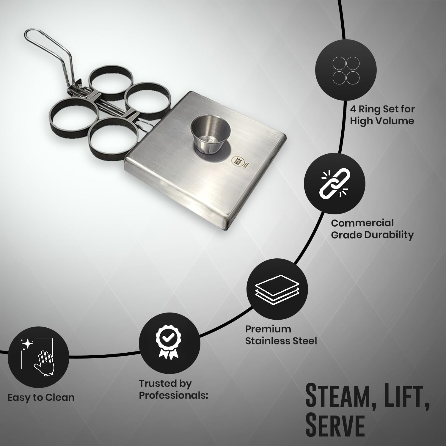 - DURABLE AND RELIABLE: Designed for daily use, our Egg Rings are made of PTFE, stainless steel powder and stainless steel, built to withstand the tough demands of commercial kitchens, ensuring long-lasting performance and dependability for perfectly cooked eggs every time.