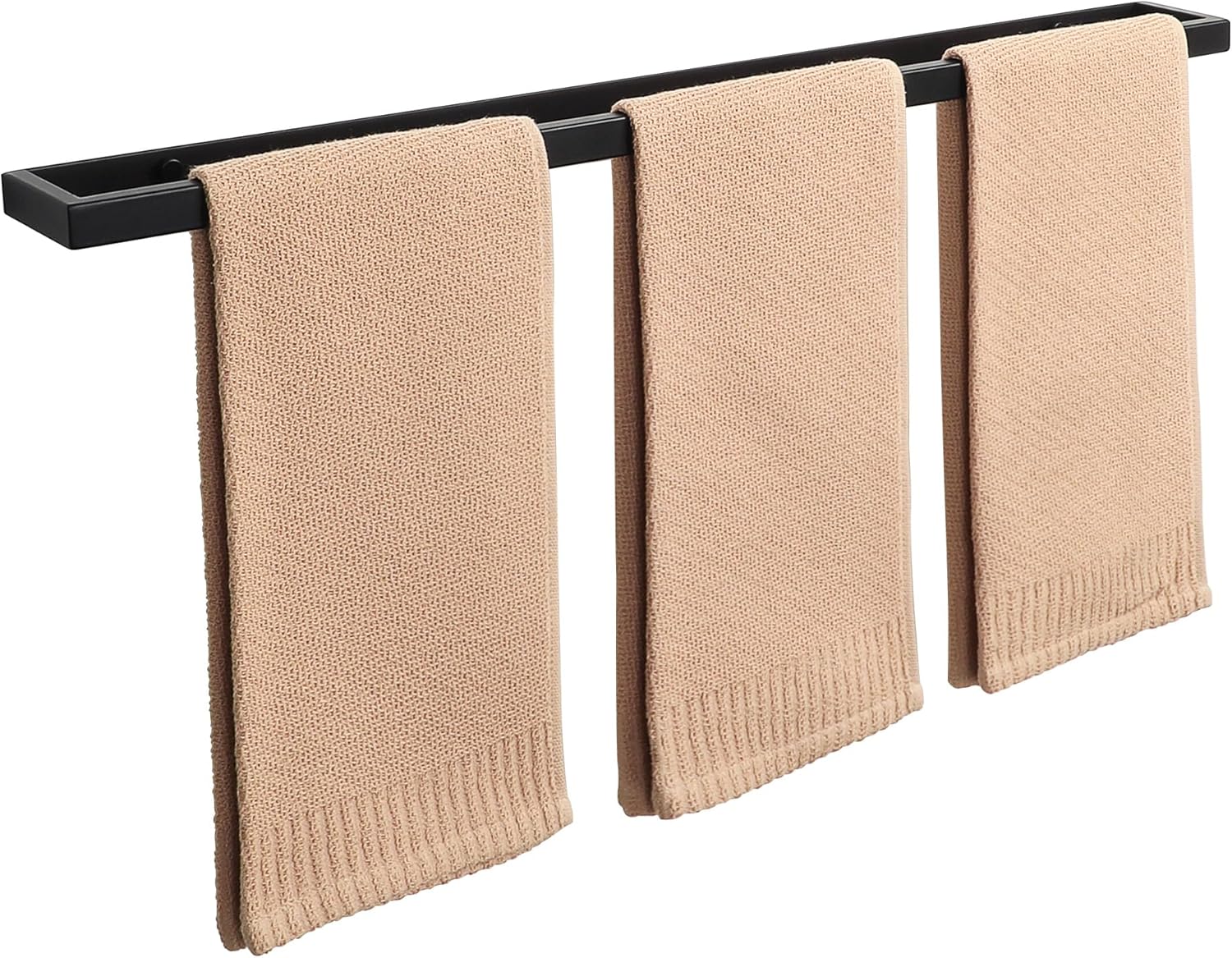 - 【Matte Black Finished】The black hand towel holder surface is smooth and beautiful;The hand towel holder is finished by ultra high temperature matte black spraying technology;The bathroom towel holder boasts resistance to oxidation, fading and paint loss.