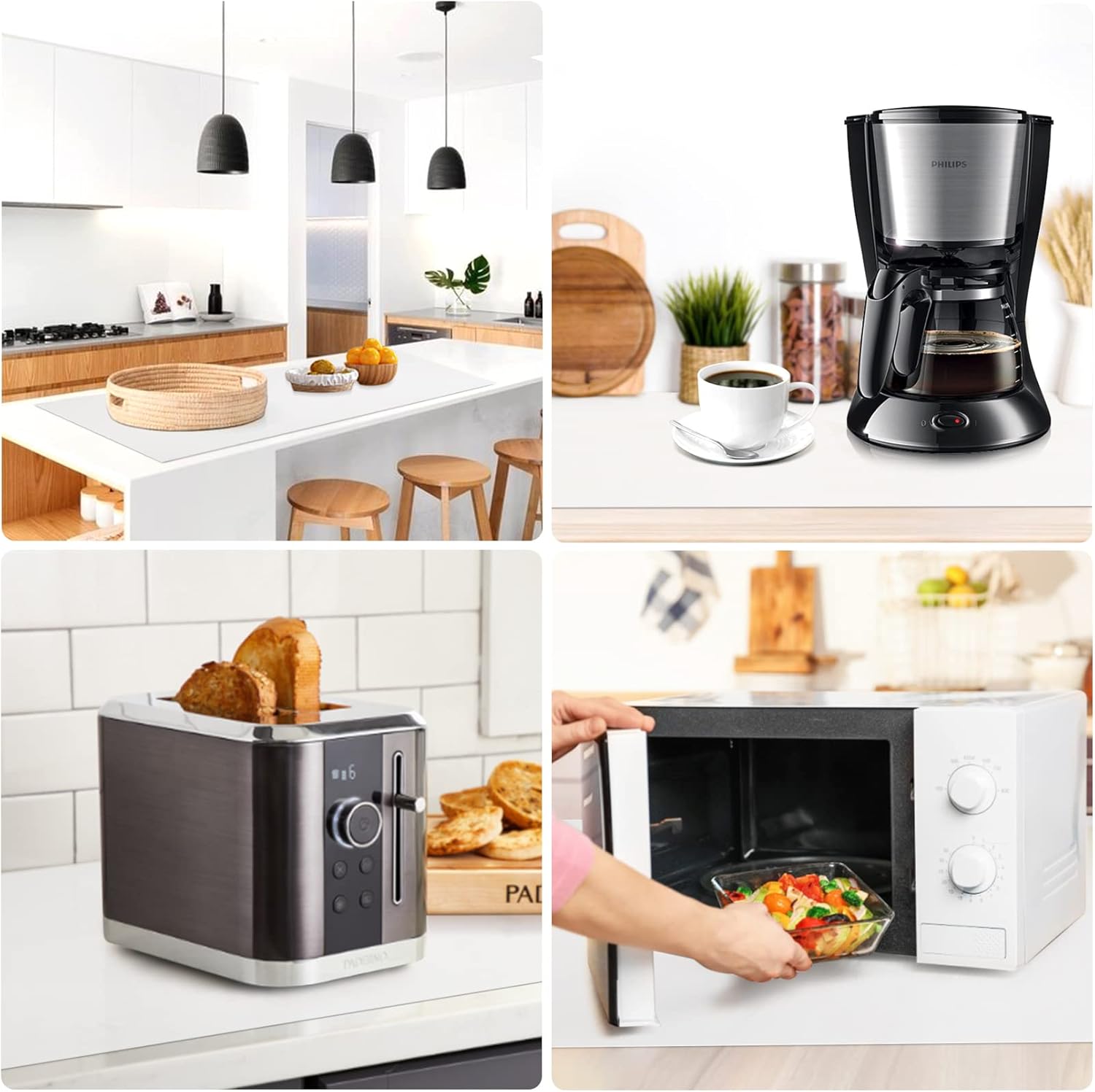 - 【A perfect countertop protector 】The counter protector protect the kitchen countertops and other surfaces against scratches, spills, grease, heat, etc. Heat resistant between -40°F and 446°F, making it safe for placing under the air fryer, microwave, induction stove, toaster oven, coffee maker, etc.