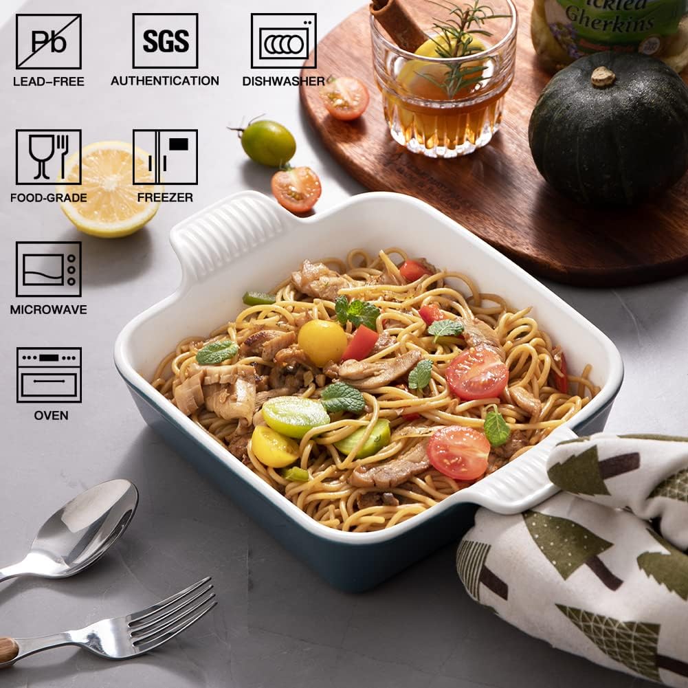 Sweejar Ceramic Baking Dish, 9 x 9 Cake Baking Pan for Brownie, Porcelain Square Bakeware with Double Handle for Casserole, Lasagna, Family Dinner (Fog Blue)