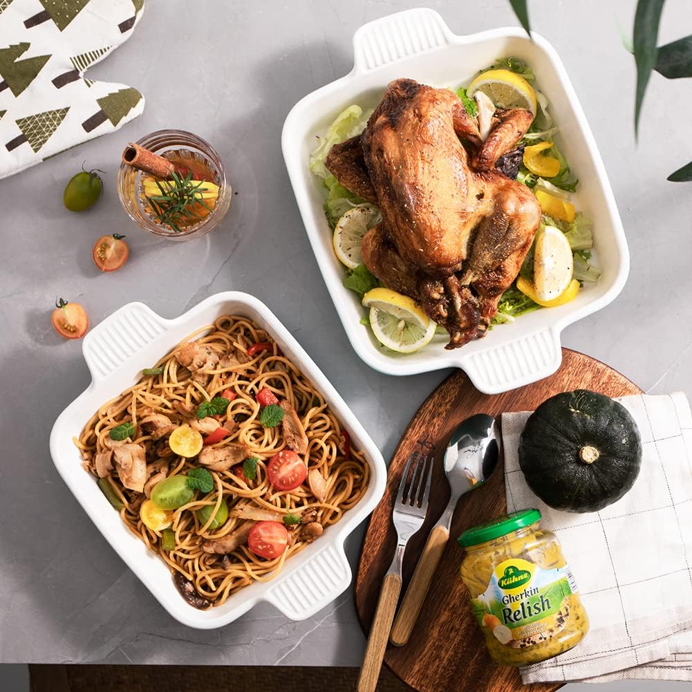 - Even Baking & Non Sticking - Smooth surface prevents the stains from remaining/sticking easily, super easy to clean and cook so evenly. You can use this baking dish to cook whatever you want to enjoy.