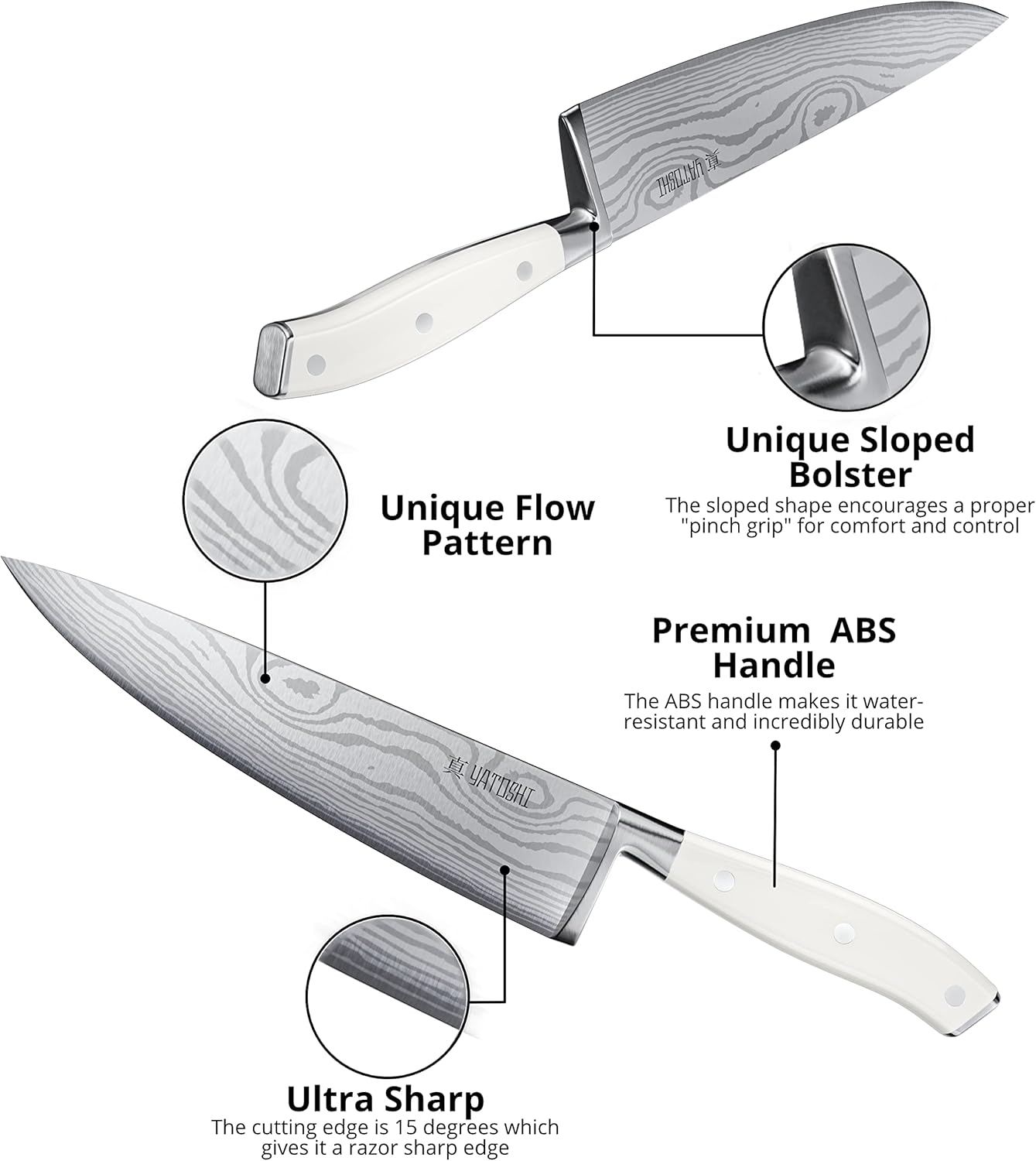Yatoshi 12 Piece White Knife Block Set - Pro Kitchen Knife Set Ultra Sharp High Carbon Stainless Steel with Ergonomic Handle
