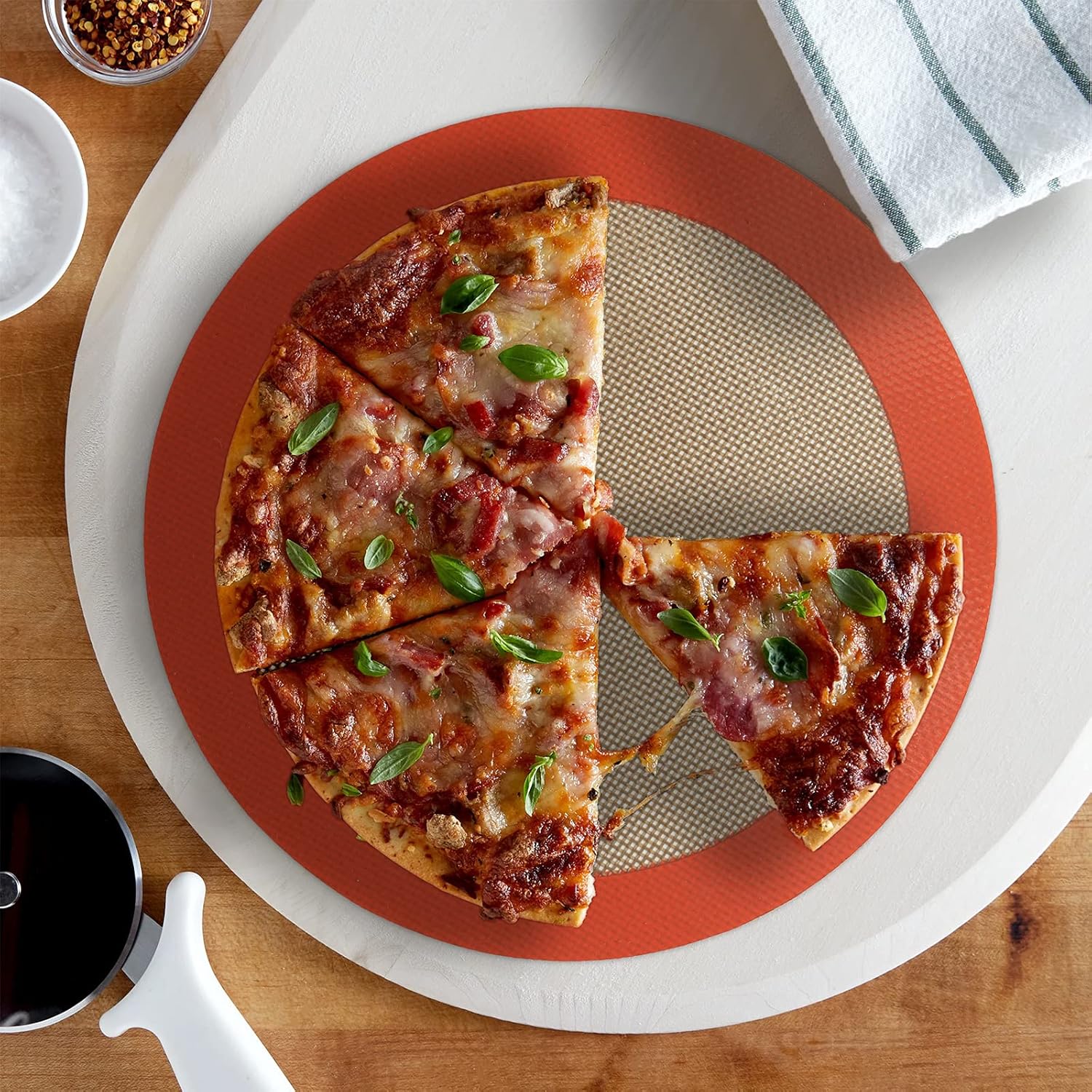 - 【MULTI-PURPOSE AND COST-EFECTIVE】This round silicone sheet is mostly ideal for toasting and baking cakes, pizza, tortilla, pastries, jellyroll, baked cookies, macarons, etc. You can also use it as a silicone cookie sheet, rolling mat, cake pan liner, pastry mat, pizza liner, or even small cooktop mat and cute pan/bowl place mat. Save money and time, while keep healthy and help protect the environment.