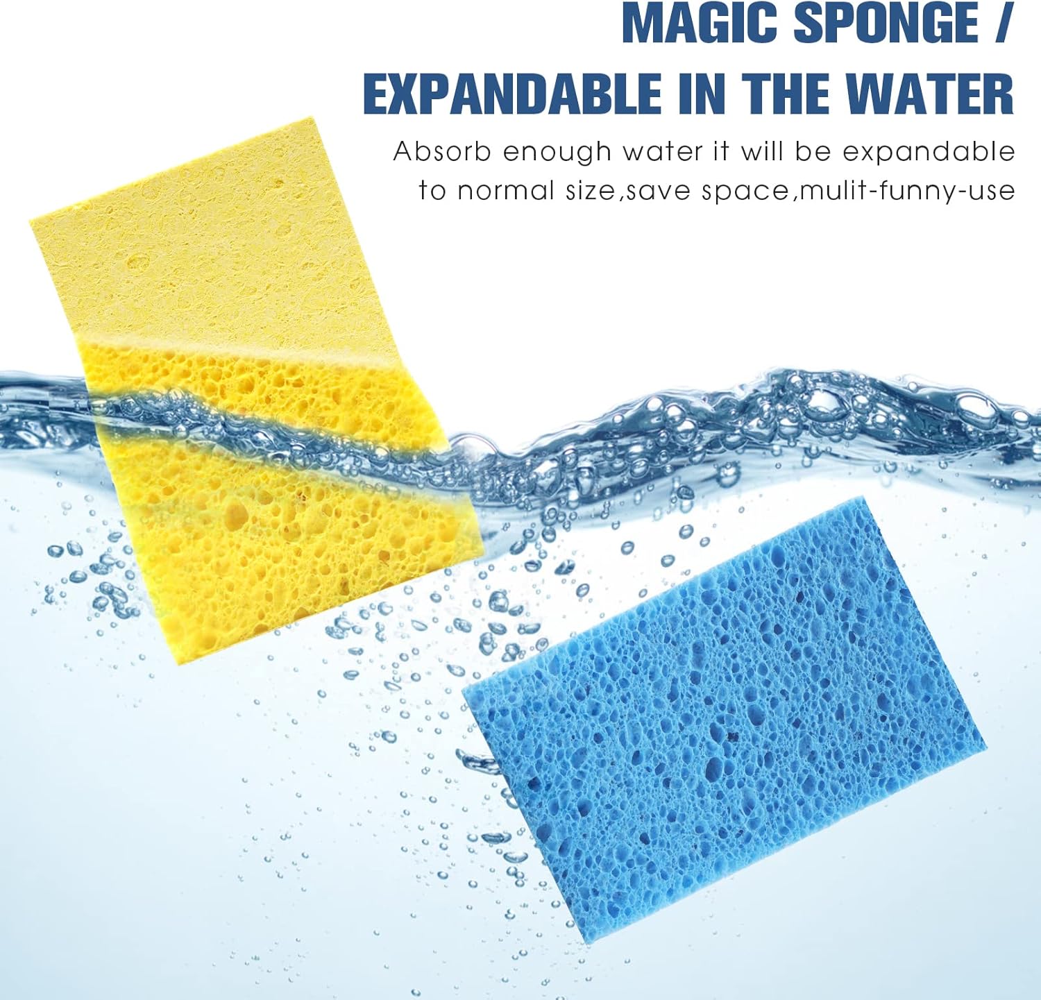 Compressed Cellulose Kitchen Sponges 12Pack,Non-Scratch Biodegradable Natural Colorful Sponge Scrub for Dishes Cleaning,Funny DIY Sponge for Kids