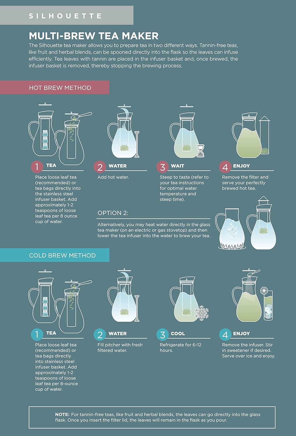 Teabloom Large Multi-Brew Glass Teapot + Kettle + Pitcher (68 OZ / 2.0 L / 8 CUPS) – Brew and Serve Hot Tea, Iced Tea, Cold Brew Tea and Fruit Infused Water – Silhouette Tea Maker