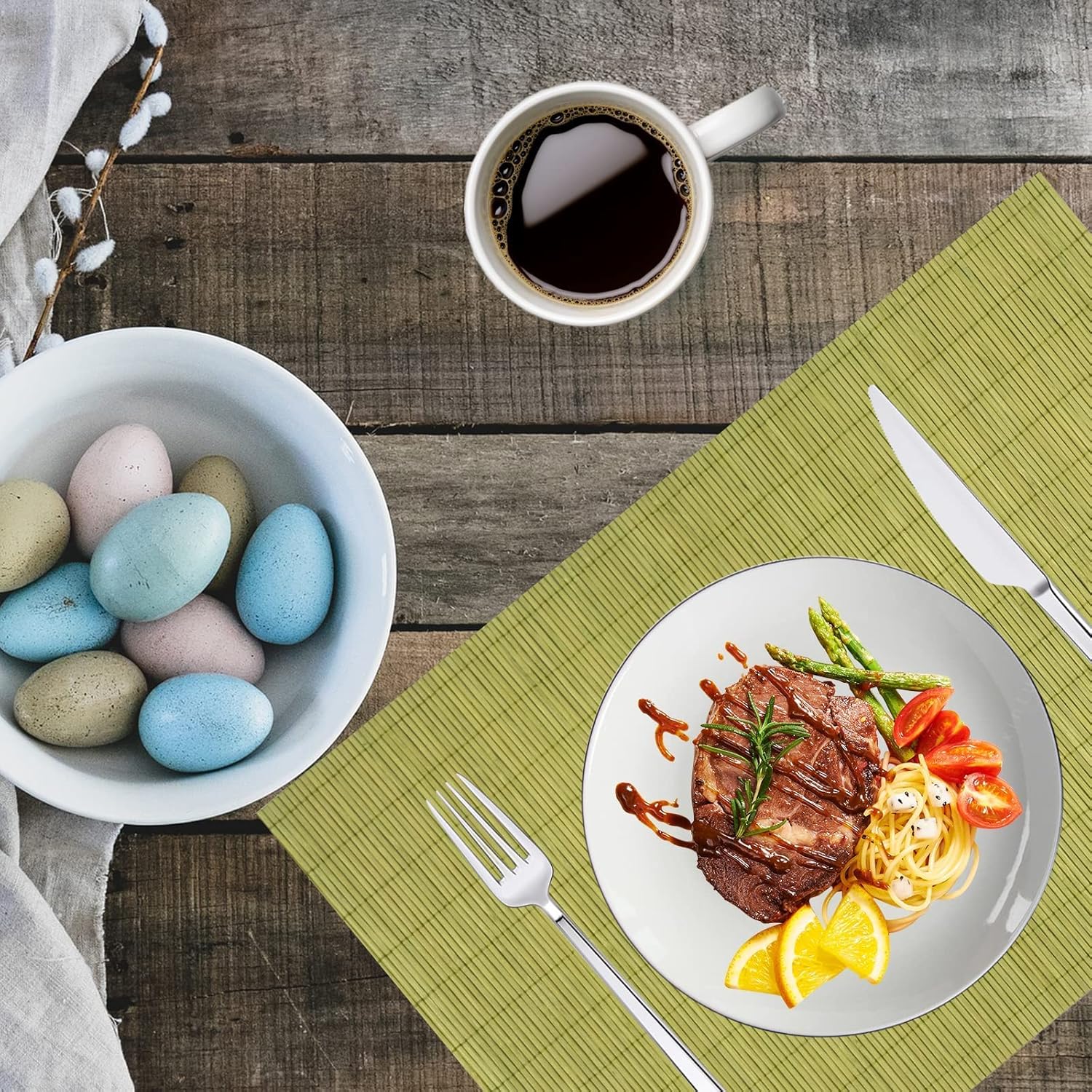 - 【APPLICABLE SCENE】:Perfect for daily use.Good match with dark wood table, glass table, white dining table, wooden farmhouse table, brown dining table.Woudeful decoration for your living room, BBQ,patio,Office,holiday dinner, outside parties and kitchen.