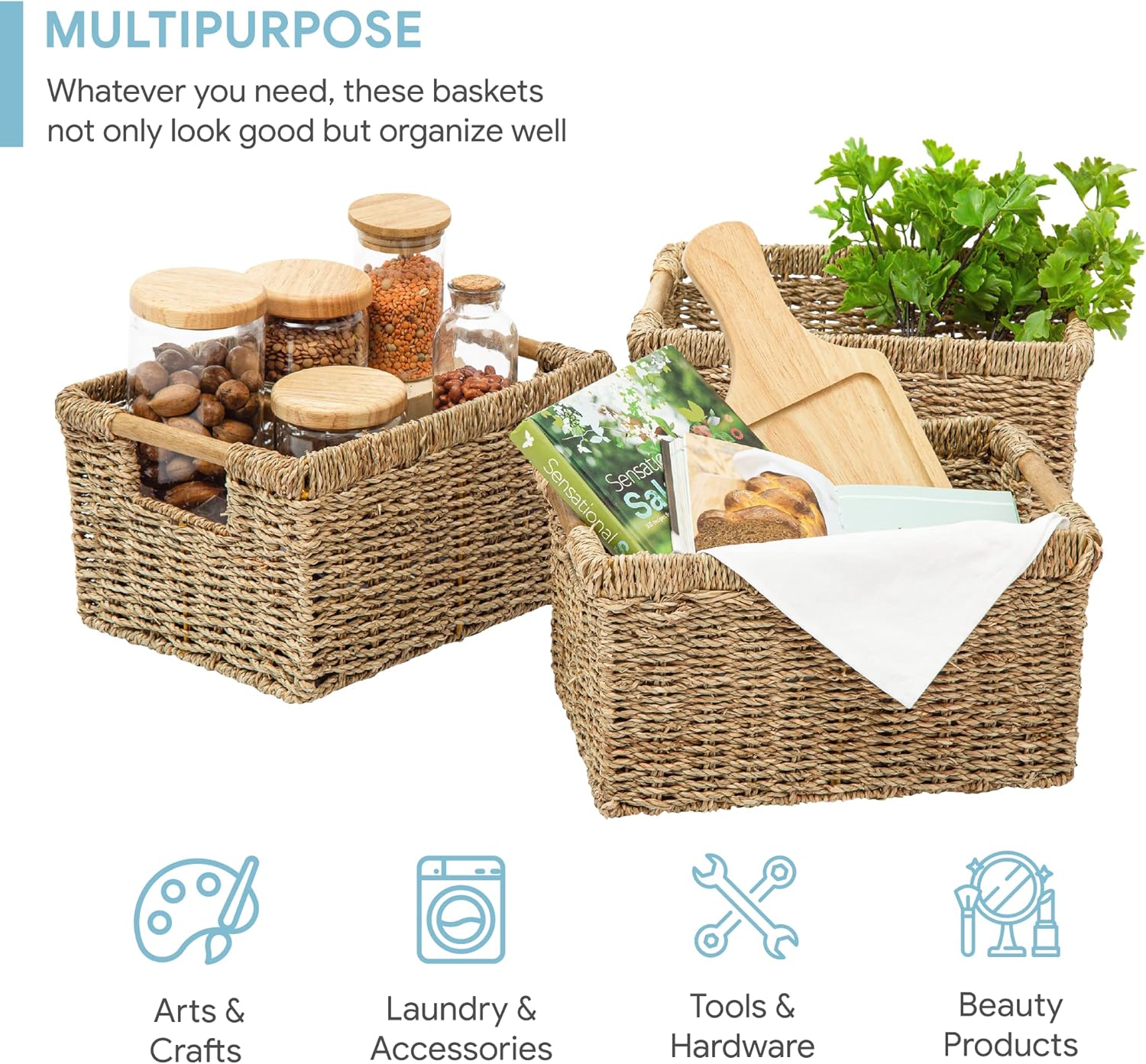 - β Ideal For Home - Natural seagrass baskets are an easy and affordable way to change the style of your home, and is a great way to make a difference by promoting a sustainable lifestyle. With their natural design, these baskets wicker make nice neutral backdrops and can brighten your day as well as impress your guests.