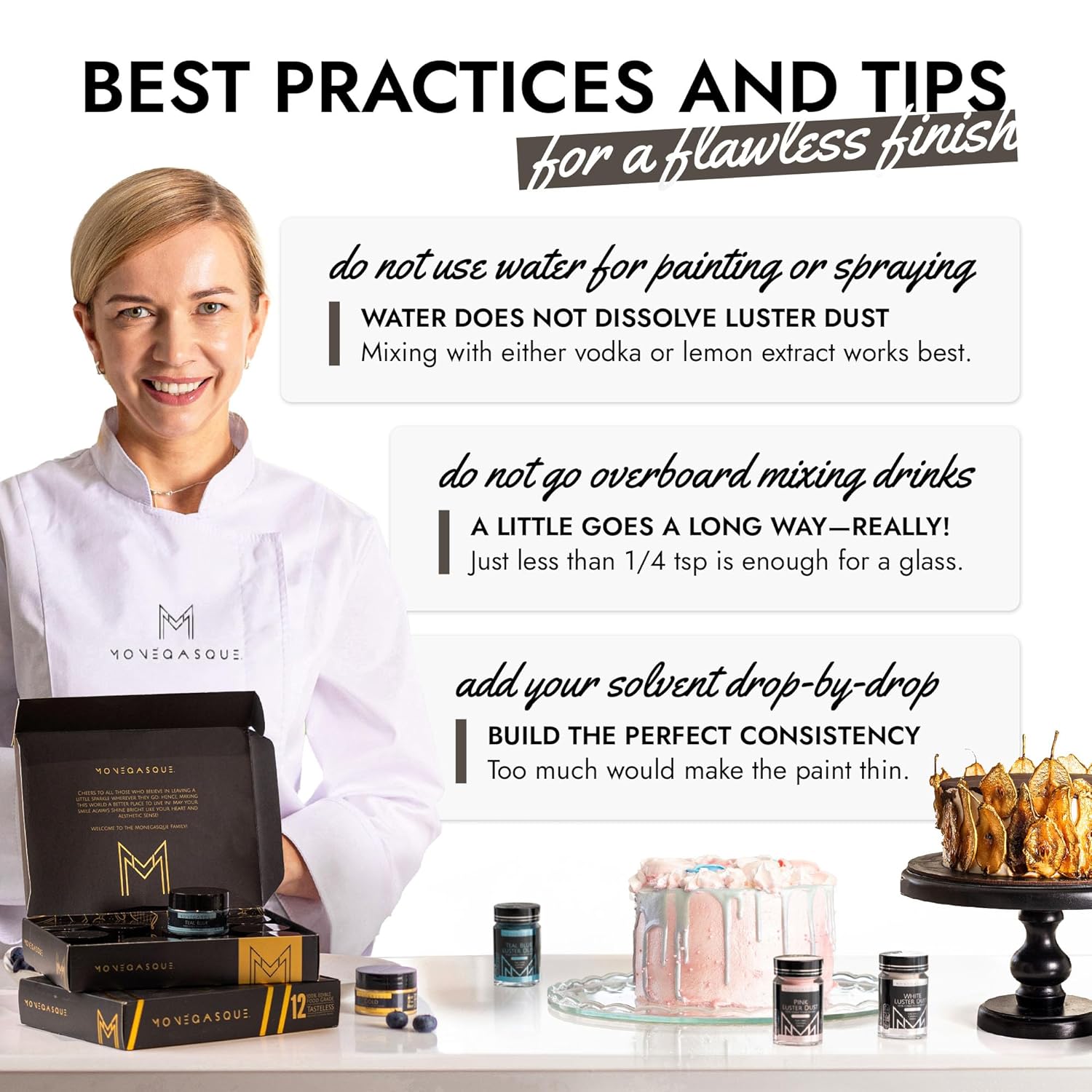 - EASY TO USE: Our black luster dust is incredibly versatile. Apply with a wet brush, airbrush, or dry brush, and even mix into beverages. Achieve professional-looking results effortlessly at home, whether decorating halloween cakes or adding shimmer to cocktails.