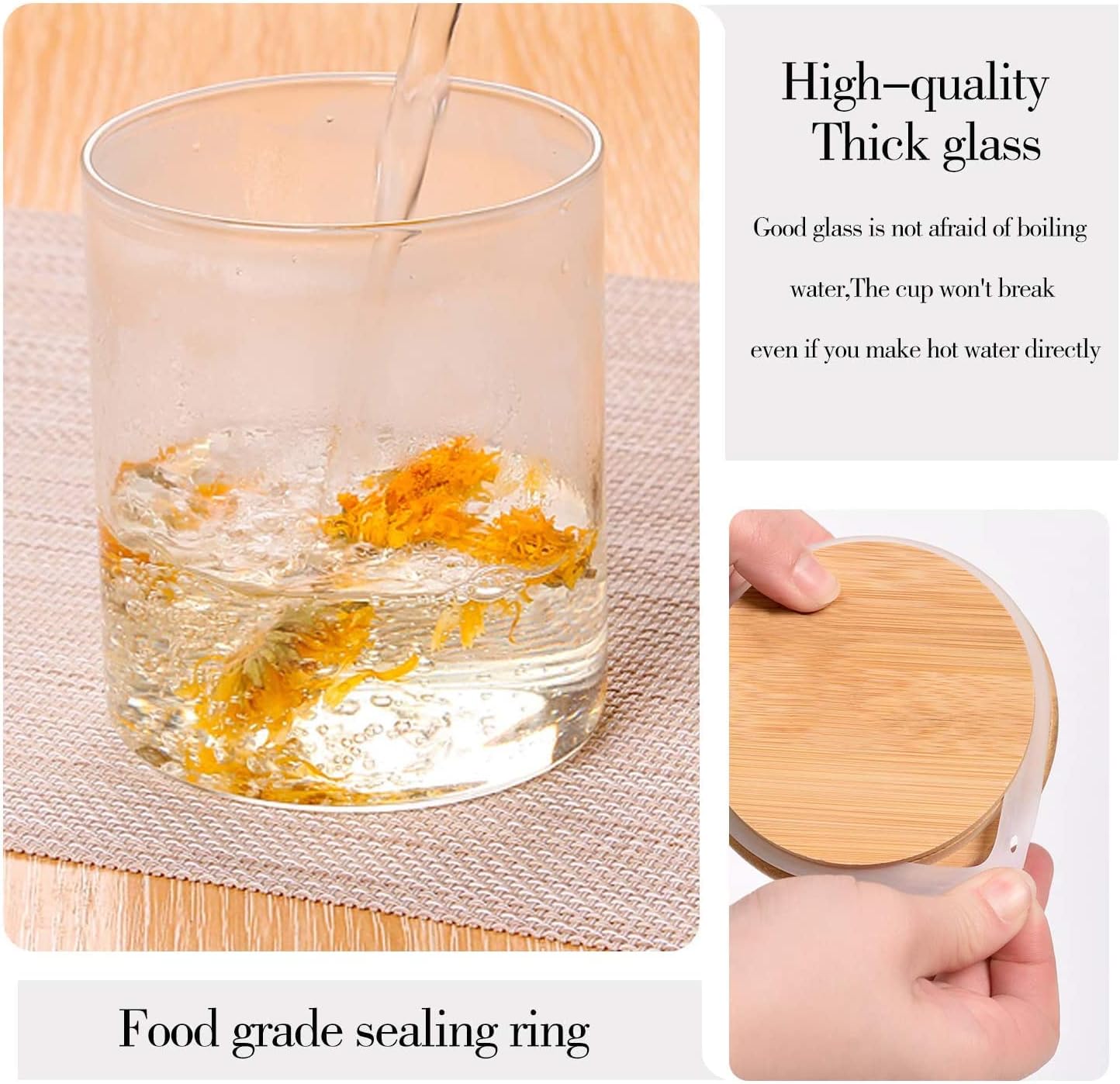 - Material : Glass, Bamboo,Silione