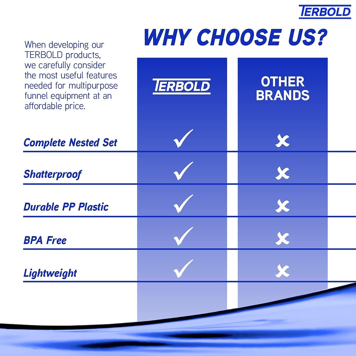 - NESTING DESIGN | All four funnels nest together, so the set requires minimal room in your kitchen drawer, utility shelf, or toolbox