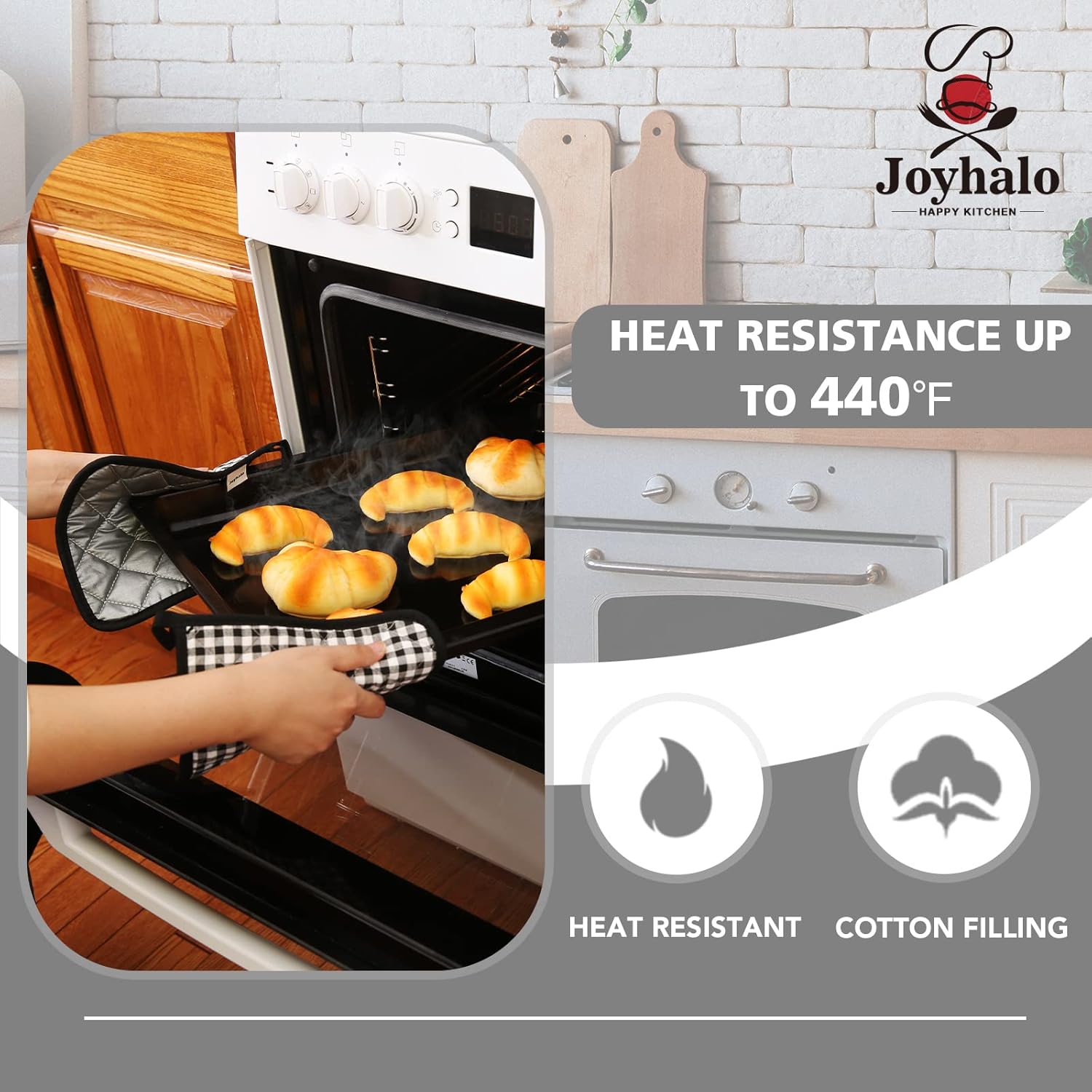 - PROTECT YOU FROM HEAT - The construction of these pot holders for kitchen helps to protect your hands and arms from the heat of the oven. Do not use pot holders in a hot oven or over an open flame.