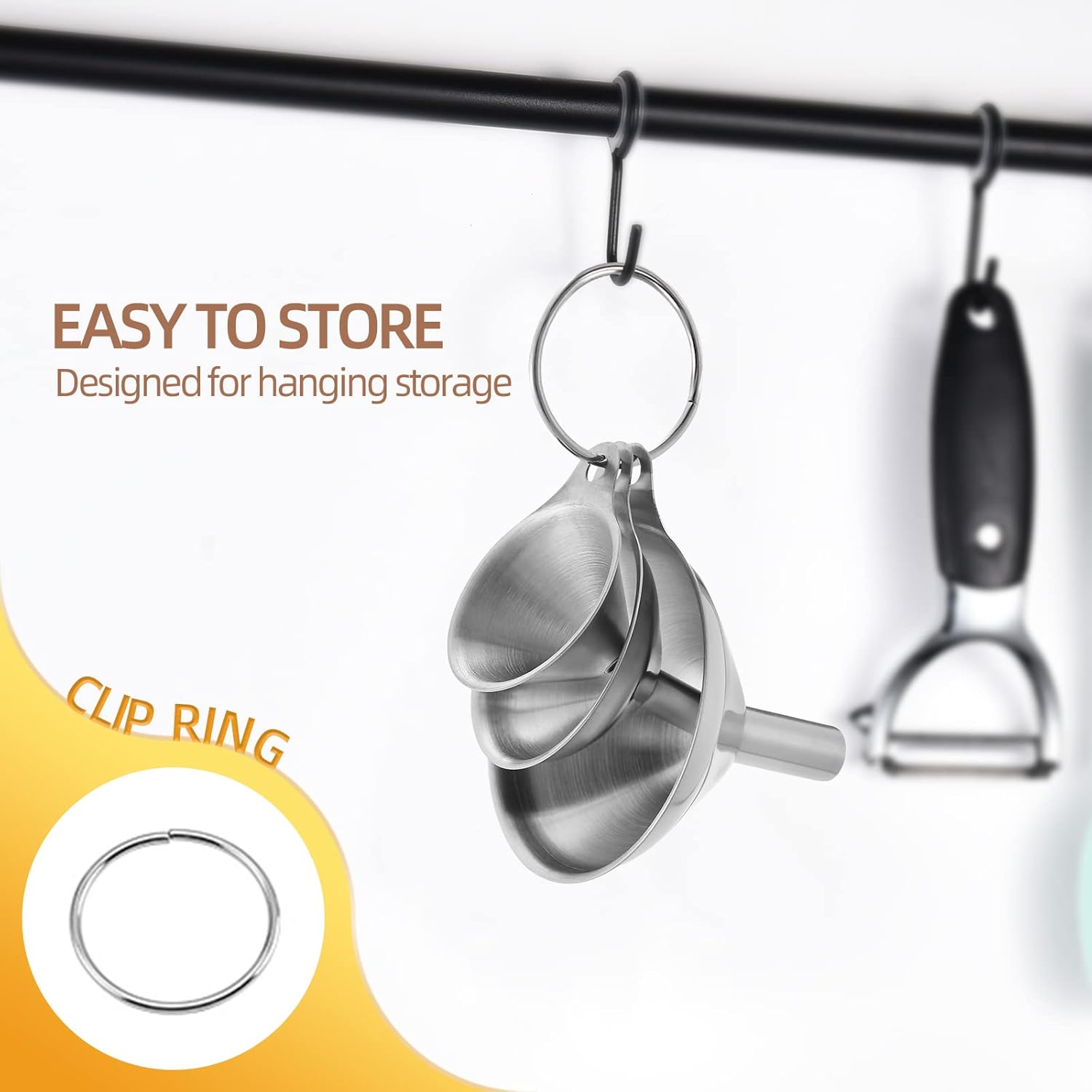 - Easy to Clean & Store - Our mini funnels are very easy to clean especially with the small brush that comes with this small funnel set. The clip ring help these small funnels keep together for storage. Funnels in 3 size are great for filling any size of jar, bottle or flask.