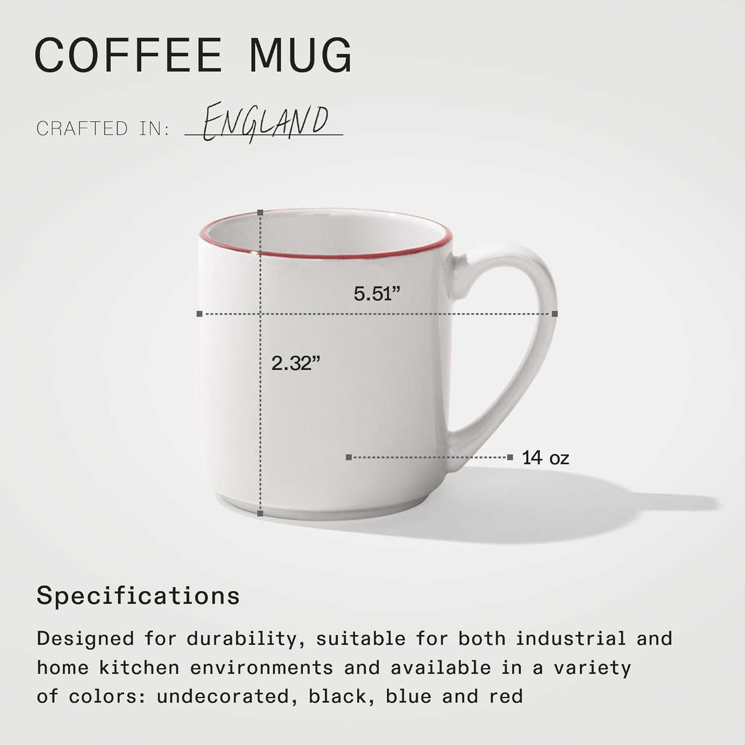Made In Cookware - Set of 4 - Coffee Mug Set - 12 oz - White With Red Rim - Porcelain England - Dishwasher and Microwave Safe