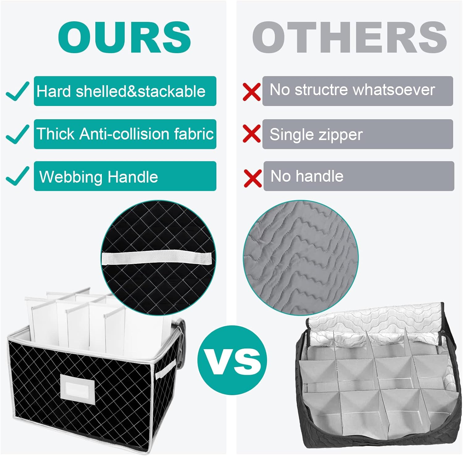 VERONLY China Storage Containers - Stemware Storage Cases for 12 Wine Champagne Glasses - 2 Pack Crystal Glassware Protector Packing Boxes with Dividers and 2 Handles for Moving (Black)