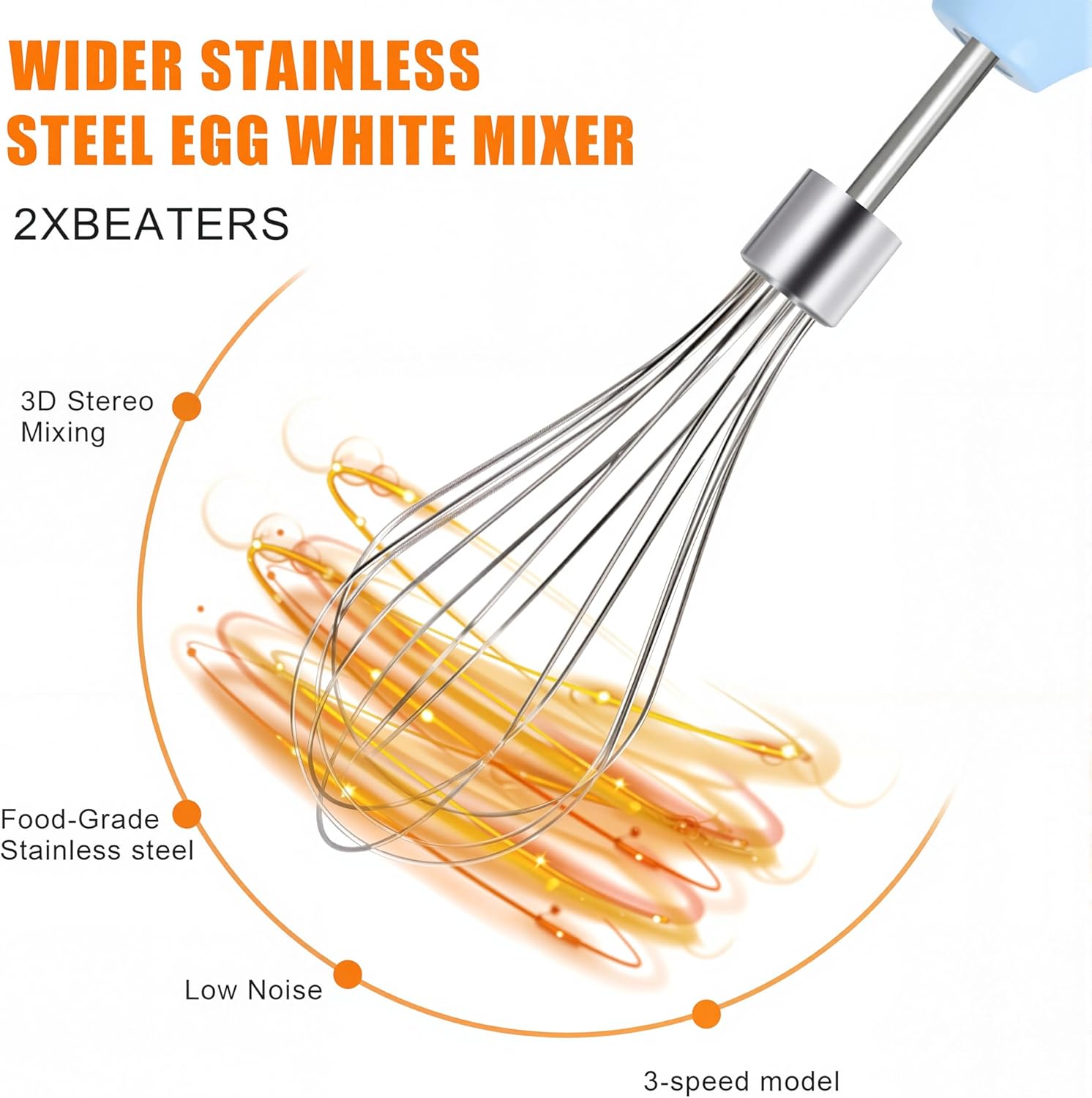 - 【Great Gift】This Hand Mixer Electric Handheld is a nice gift for Visiting friends/ House Warming Parties/ Wedding Parties/Birthdays. Please note the Electric Handheld Kitchen Mixer needs to take a rest after 5 mins continuous work.