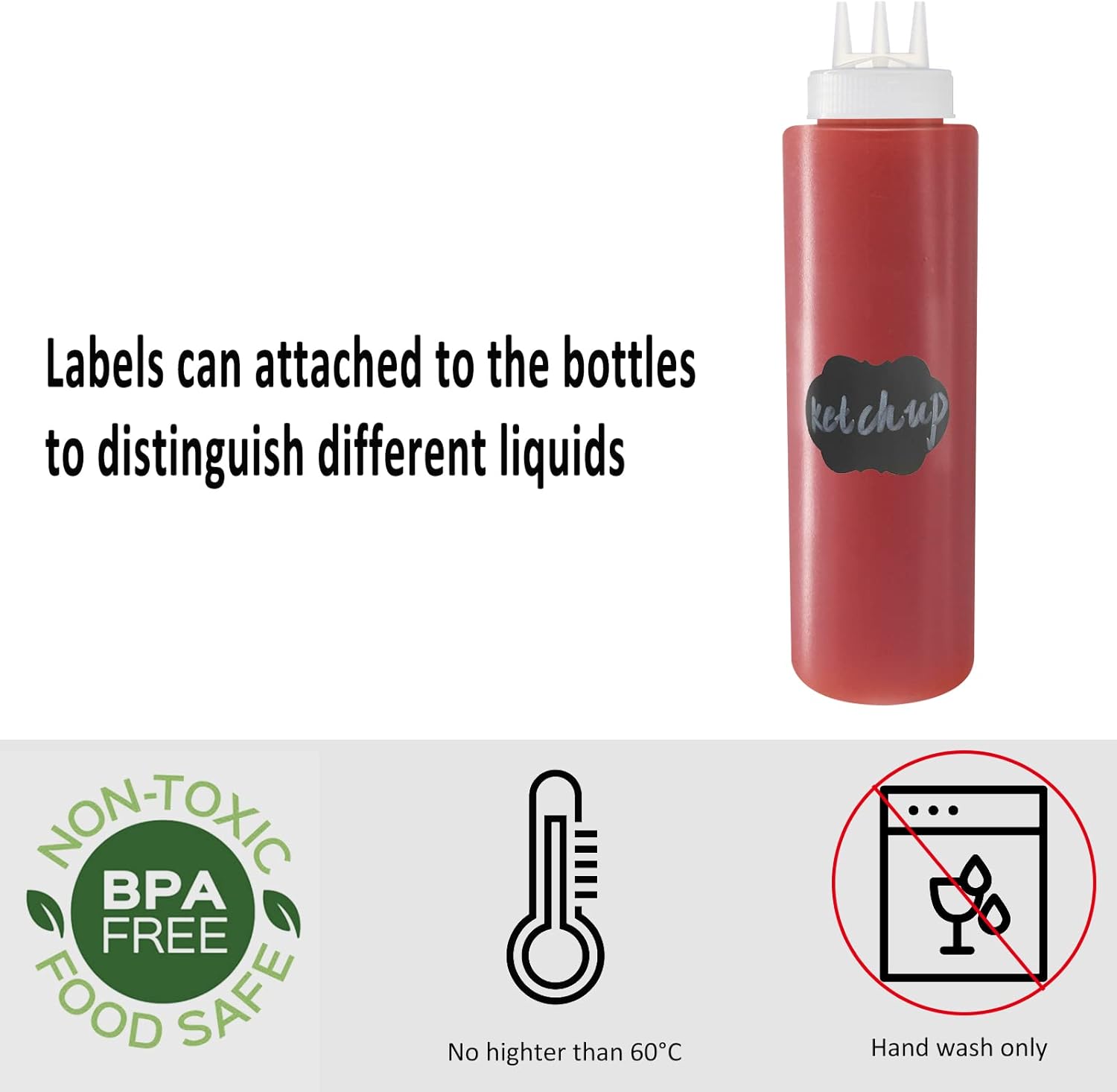 - Perfect for any liquid that comes to mind. From ketchup, mustard, soy, chili sauce, condiments, sushi sauce, to oil, maple syrup, chocolate, peanut butter, salad dressings and more.