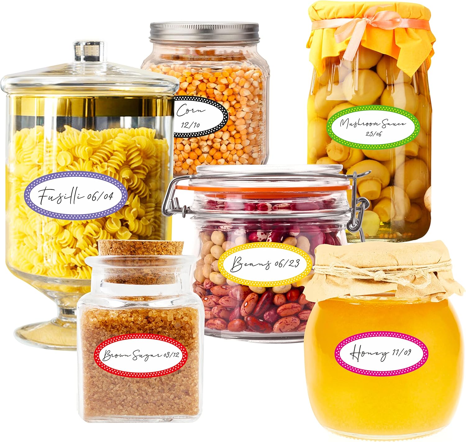 - Value Pack: 500 pcs oval canning labels align in an easily distributed roll with perforation line, Each measures 2.5” x 1.2” for assorted ingredient storage volume and use. Self-Adhesive stickers stick great on food containers and plastic bags.
