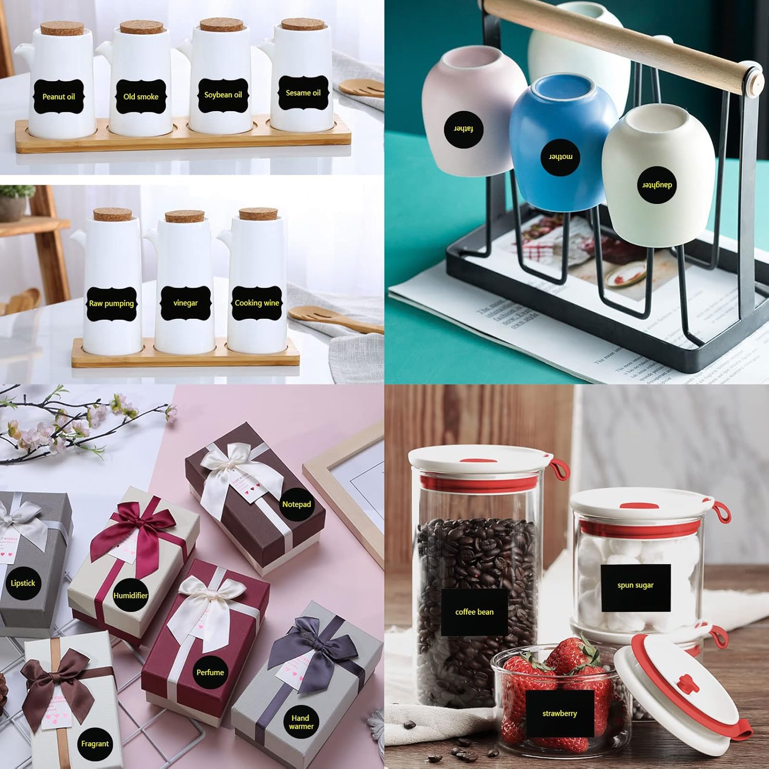 - 【Multi-Purpose Chalkboard Labels】These storage bin labels can be used in the kitchen (jars, bottles, cups, boxes) but also for the organization of the office as well as for various craft projects. These perfect blackboard sticker labels suit for all the occasions decorating and organizing, like bride party, birthday, Christmas, cocktail party. Put a DIY label on thank you card, gifts, food stations, name label on the dining table, or drinks remark to make your decorations more attractive!
