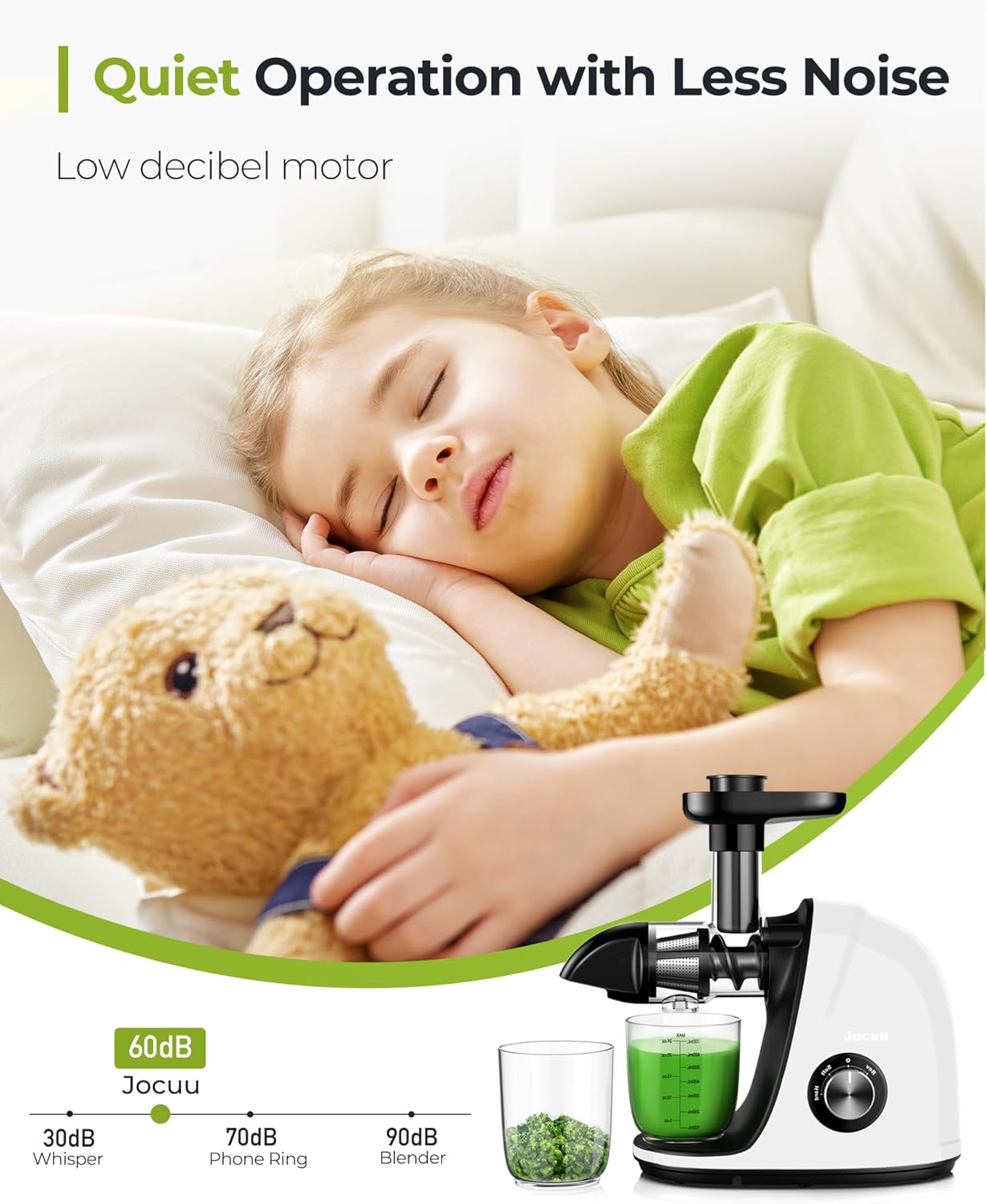 Jocuu Slow Masticating Juicer with 2-Speed Modes - Cold Press Juicer Machine - Quiet Motor & Reverse Function - Easy to Clean Juicer Extractor - Juice Recipes for Fruits & Vegetables (White)