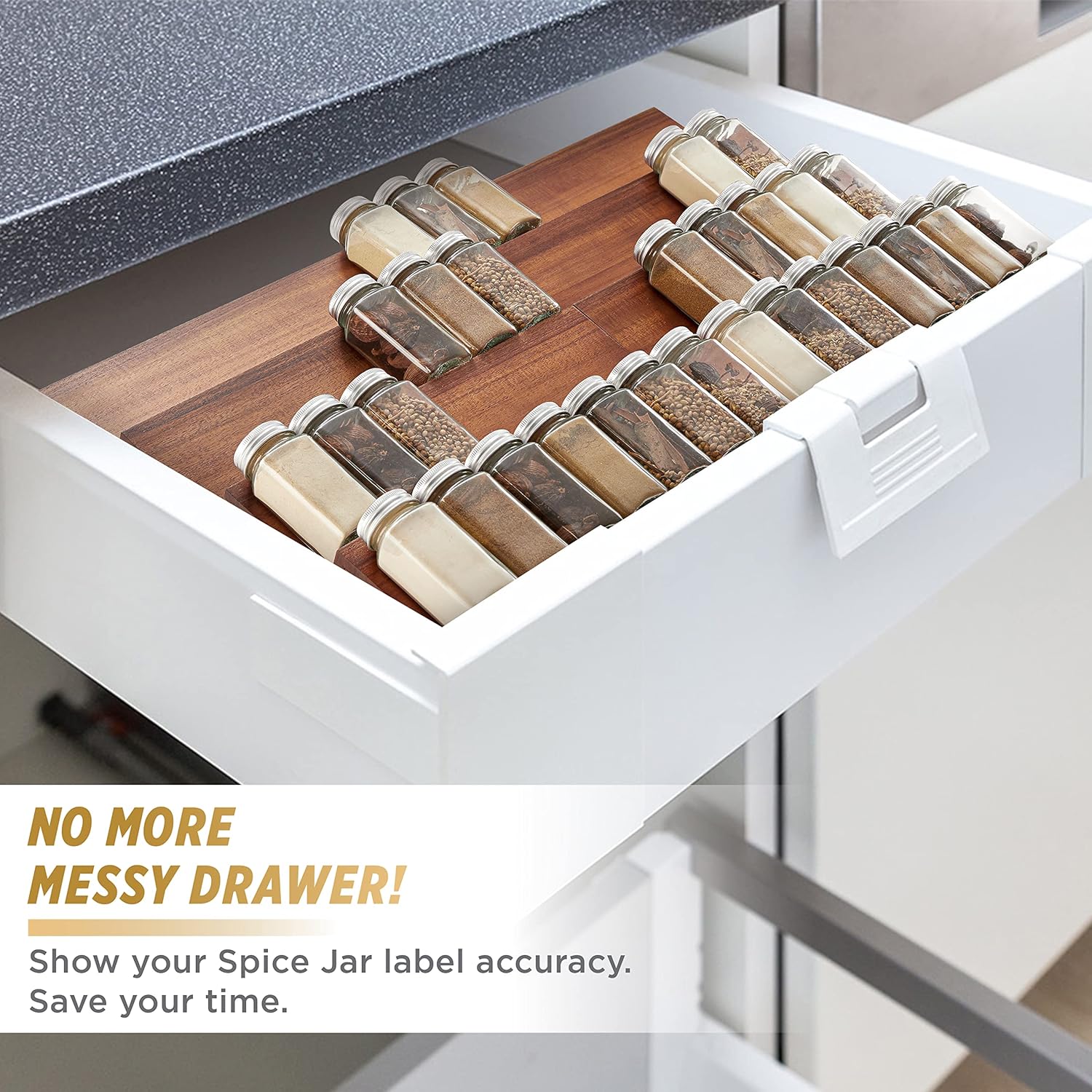 - Efficient Space Saver: Maximize your drawer space by storing your spices horizontally, allowing you to easily see and access each jar. The tiered design ensures that all labels are visible at a glance.