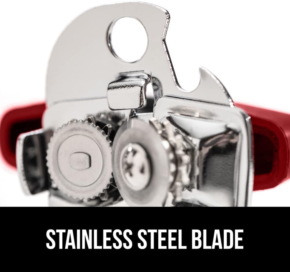- STRONG AND POWERFUL STAINLESS STEEL BLADE: finally, a more powerful can opener; sharp and durable 100 percent stainless steel cutting wheel will easily puncture all types of cans; rust resistant for long lasting use