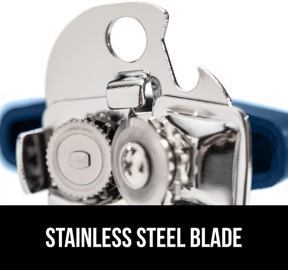 GORILLA GRIP Heavy Duty Stainless Steel Smooth Edge Manual Can Opener and Bottle Openers, Soft Comfortable Handle, Oversized Handheld Turn Knob, US Designed Multifunctional Kitchen Tool, Blue