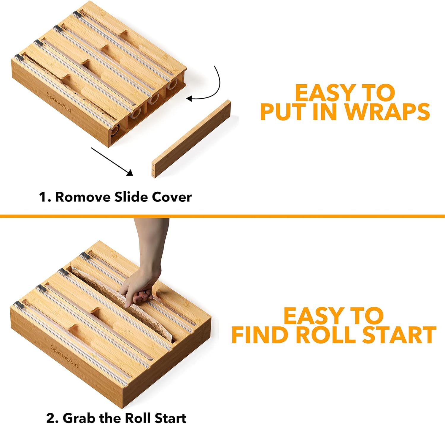 - Wrap Dispenser Holder: Make your drawer neat and organized with this bamboo box; The aluminum foil dispenser is designed specifically for your different wraps organization; SIZE: 13-1/4" x 11" x 3"