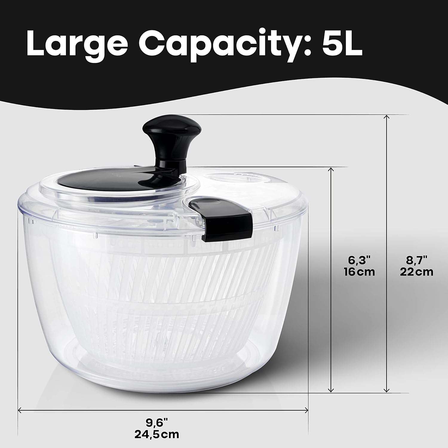 Joined Large Salad Spinner with Drain, Bowl, and Colander - Quick and Easy Multi-Use Lettuce Spinner, Vegetable Dryer, Fruit Washer, Pasta and Fries Spinner - 5.28 Qt