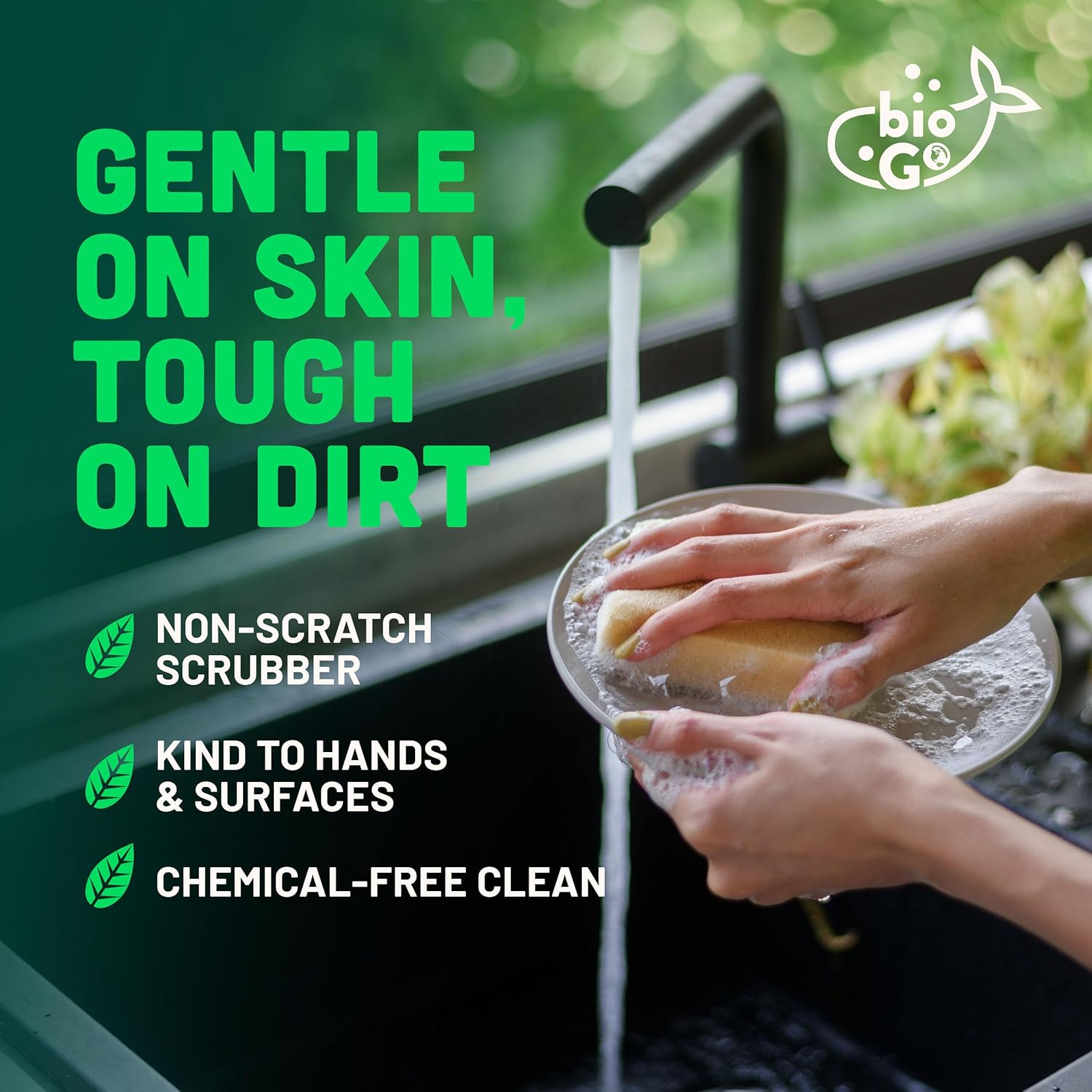 - MADE FROM PLANTS: This pack of bioGo reusable sponges is made from wood cellulose and coconut husk. You're scrubbing with coconut, cleaning with wood, and plant-based fibres. An organic sponge for an organic world