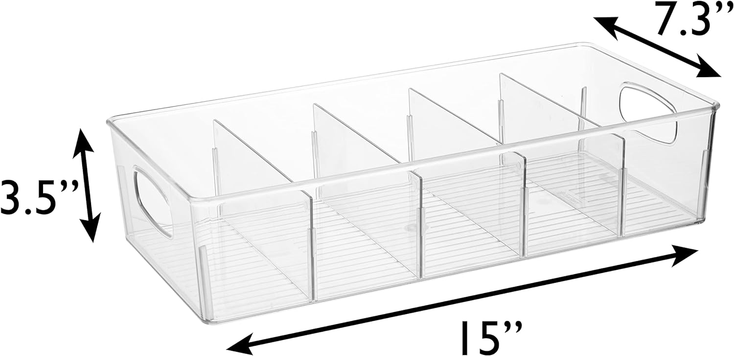ClearSpace Plastic Pantry Organization and Storage Bins with Removable Dividers – 4 Pack XL Perfect Kitchen Organization or Kitchen Storage – Refrigerator Organizer Bins, Cabinet Organizers