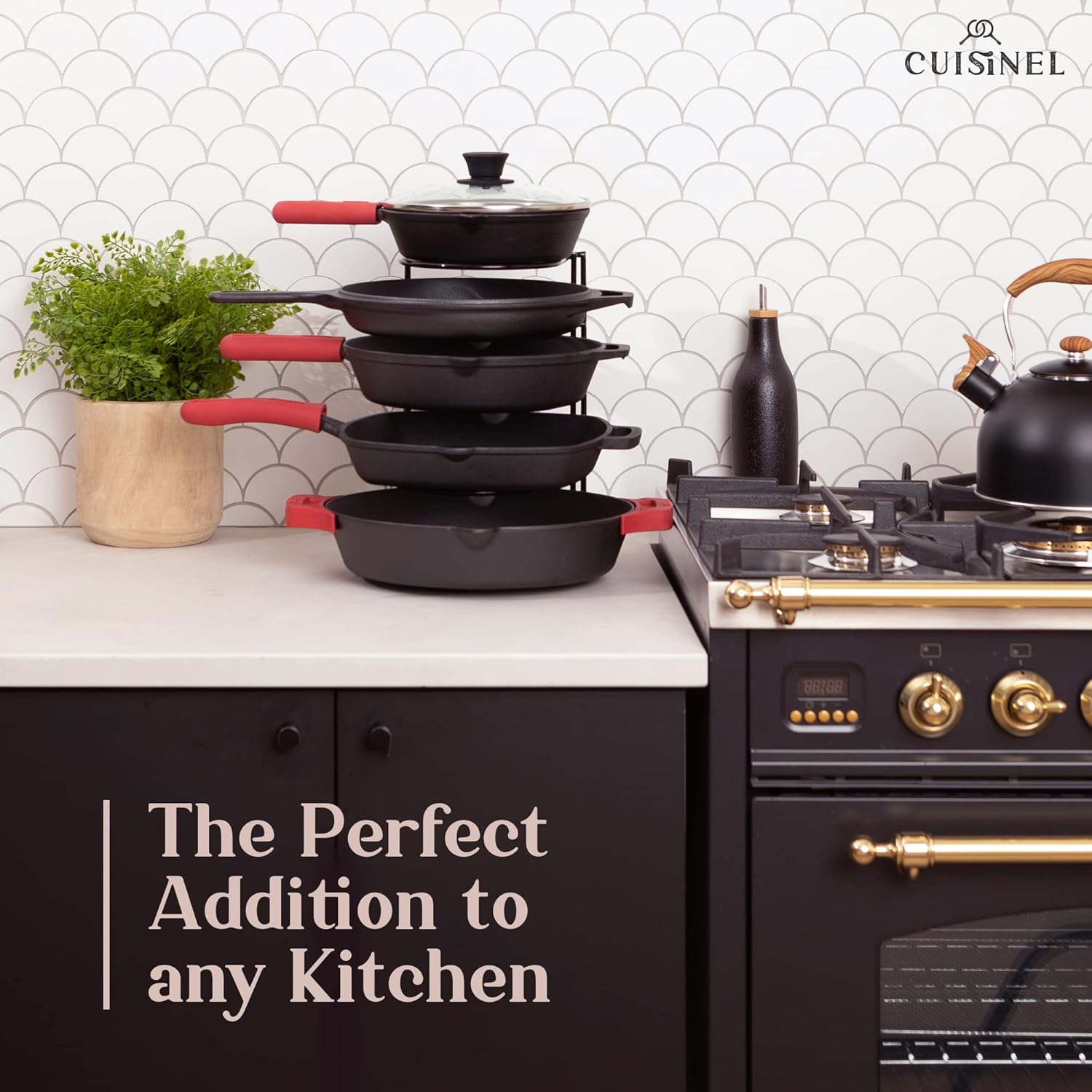 Pan Organizer - Silicone-Coated Non-Slip 12" Heavy Duty Skillet Rack - Kitchen Counter/Cabinet Organization Storage - Holder for Cookie Sheet, Cutting Board, Cast Iron Cookware, Dish, Pot, Lid Stand