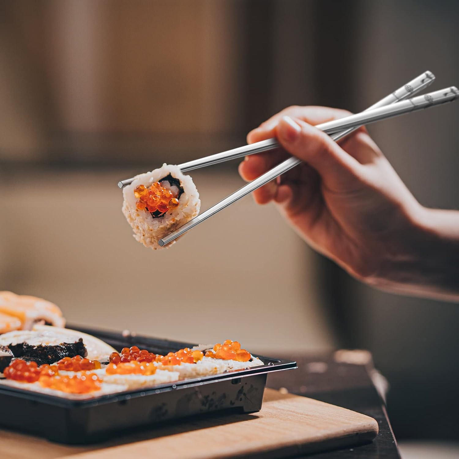 - 【Non-Slip Design】These reusable metal chopsticks feature a non-slip design, providing a secure grip for both beginners and experienced users. Whether you're enjoying sushi, noodles, or dumplings, they work great, enhancing your dining experience