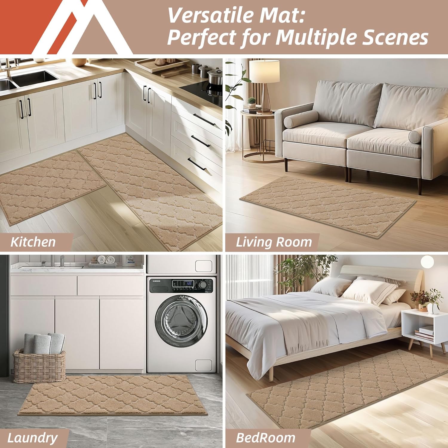COSY HOMEER Soft Floor Mats for in Front of Sink Super Absorbent Kitchen Rugs 20"x59" Non-Skid Standing Mat Washable,Polyester,Beige