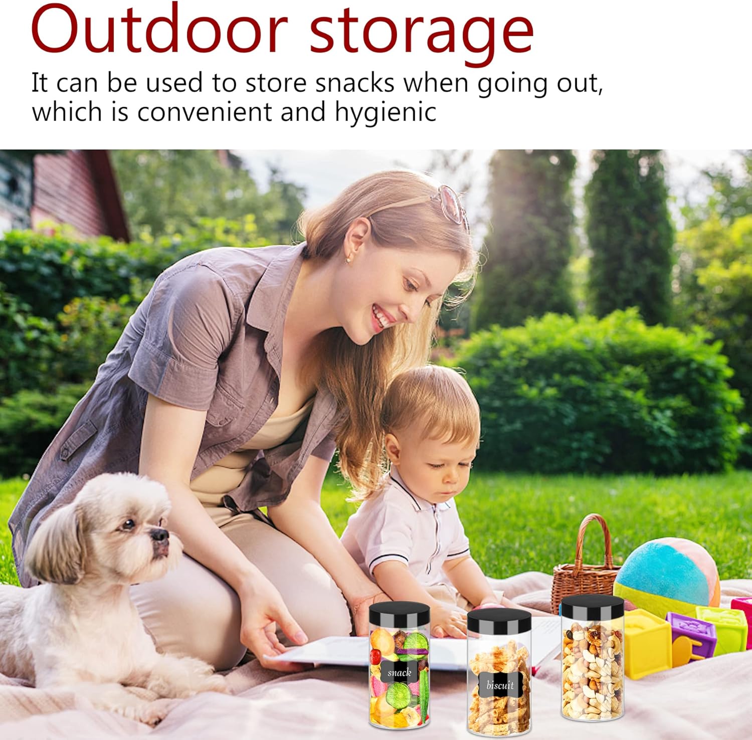 - 【Visible Transparent Clear】The empty food storage containers are perfect for storage, the clear PET plastic jar offers excellent clarity and product visibility giving a full view of the product inside and offers excellent impact resistance in a beautiful, rounded body and base shape, you can see the inside contents clearly, which helps you see the amount of food inside the jars and find the items you need quickly. So these plastic jars are very suitable as gifts to family and friends.