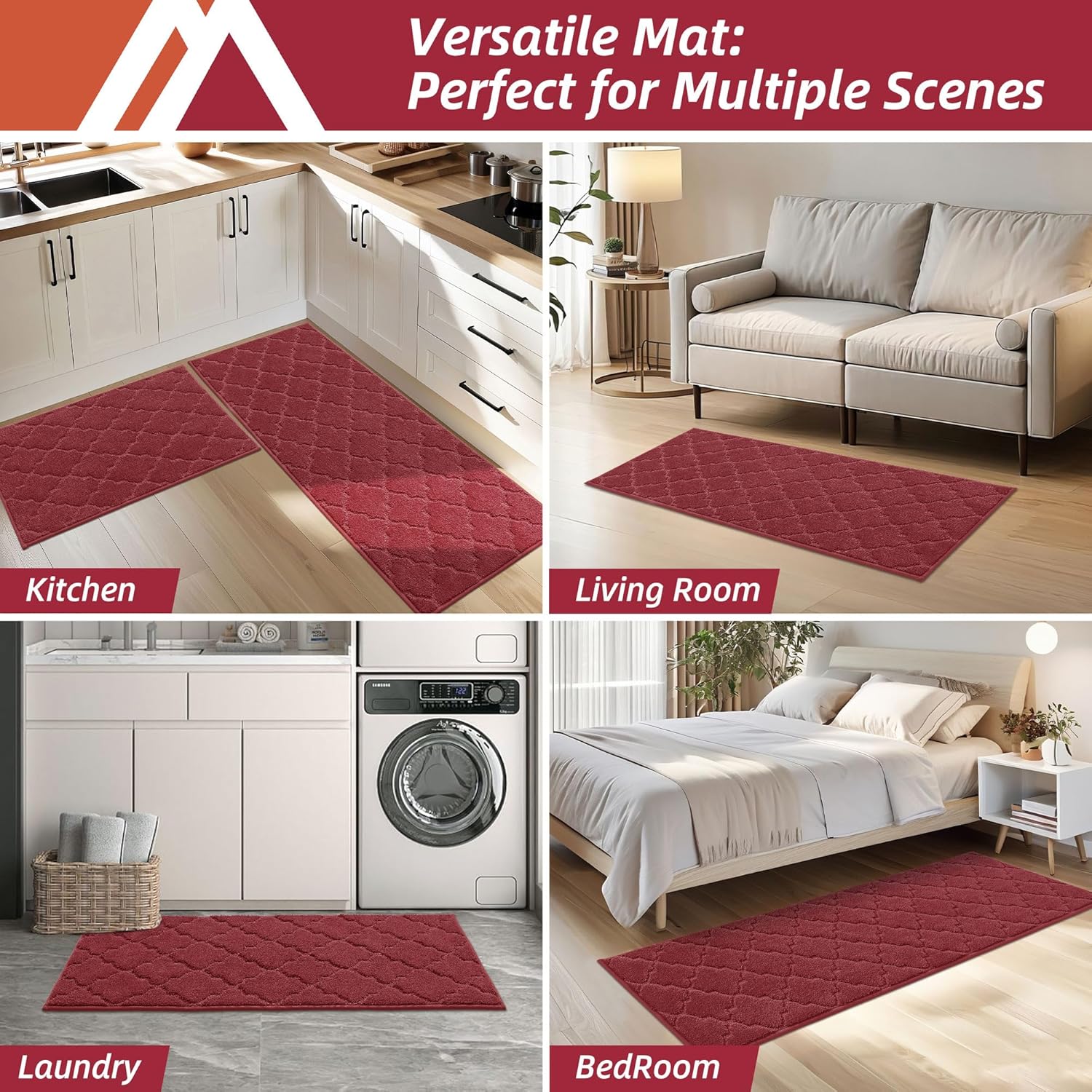 COSY HOMEER Soft Kitchen Floor Mats for in Front of Sink Super Absorbent Rugs and 20"x59" Non-Skid Mat Standing Washable,Polyester,Red