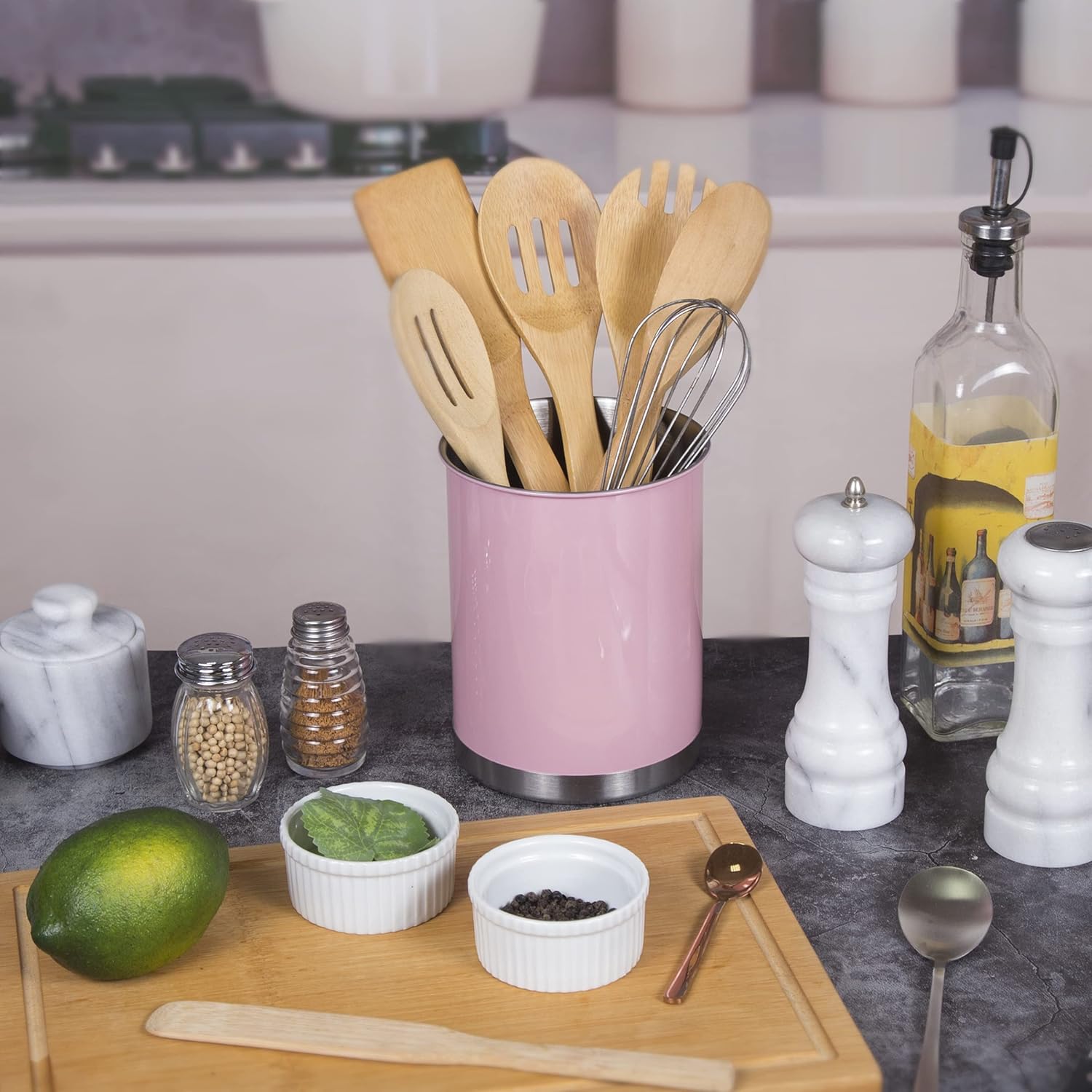 - Multi-Purpose Design: More than just a cooking utensil organizer, it can also store other items or be used as a wine bucket or for chilling beer with ice cubes, adding both function and style to your kitchen and dining occasions