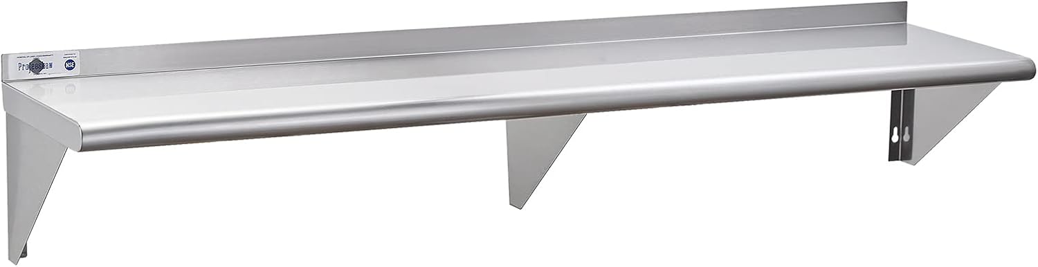 - Premium Stainless Steel: Made of 18 gauge Type 430 stainless steel, this wall mounted shelf is NSF certified to meet stringent public health standards and regulations. It is resistant to corrosion and rust, beautiful and practical, and durable. The food-grade stainless steel surface, is flat and smooth, which is easy to clean and sterilize
