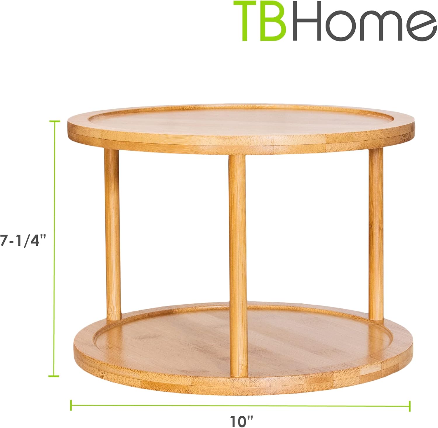 - This Two-Tier Bamboo Lazy Susan is an excellent choice for organizing spices in the pantry, reducing clutter on the countertop or ensuring items are easy to reach in the corner cabinet