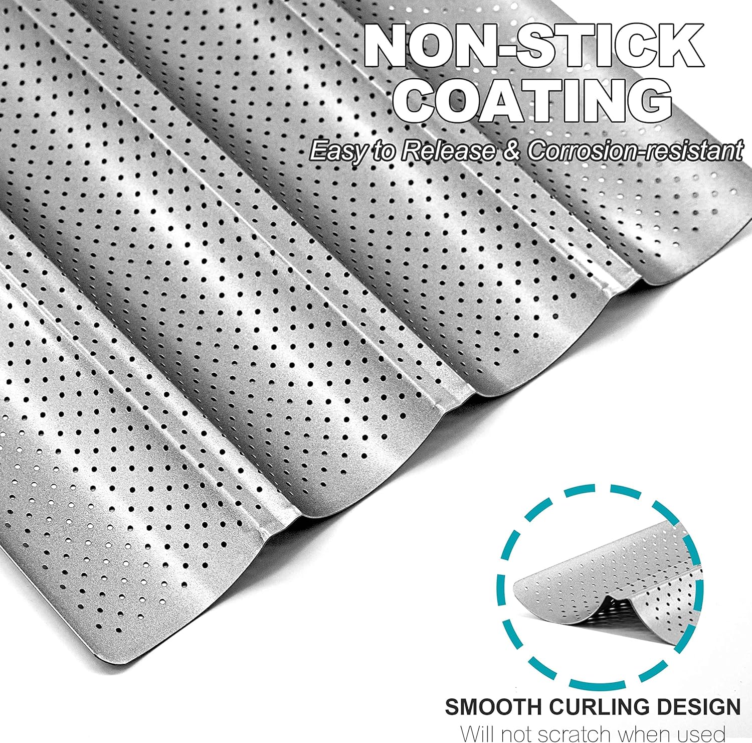 - SUPERIOR HEAT CONDUCTION & GOOD BREATHABILITY: Anaeat pan is made from heavy-weight aluminized steel for superior heat conduction and even baking, allowing loaves to crisp and brow evenly. High-quality perforated design allows moisture to release, promotes good air flow and even distribution of heat; Perfect for producing crisp baguettes every time.