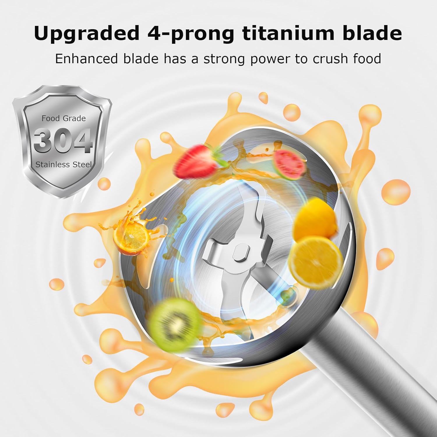 - ăADJUSTABLE SPEEDă Immersion hand blender with 2 mxing speed can quickly blends ingredients and meet various blending task with its stainless steel shaped blade.
