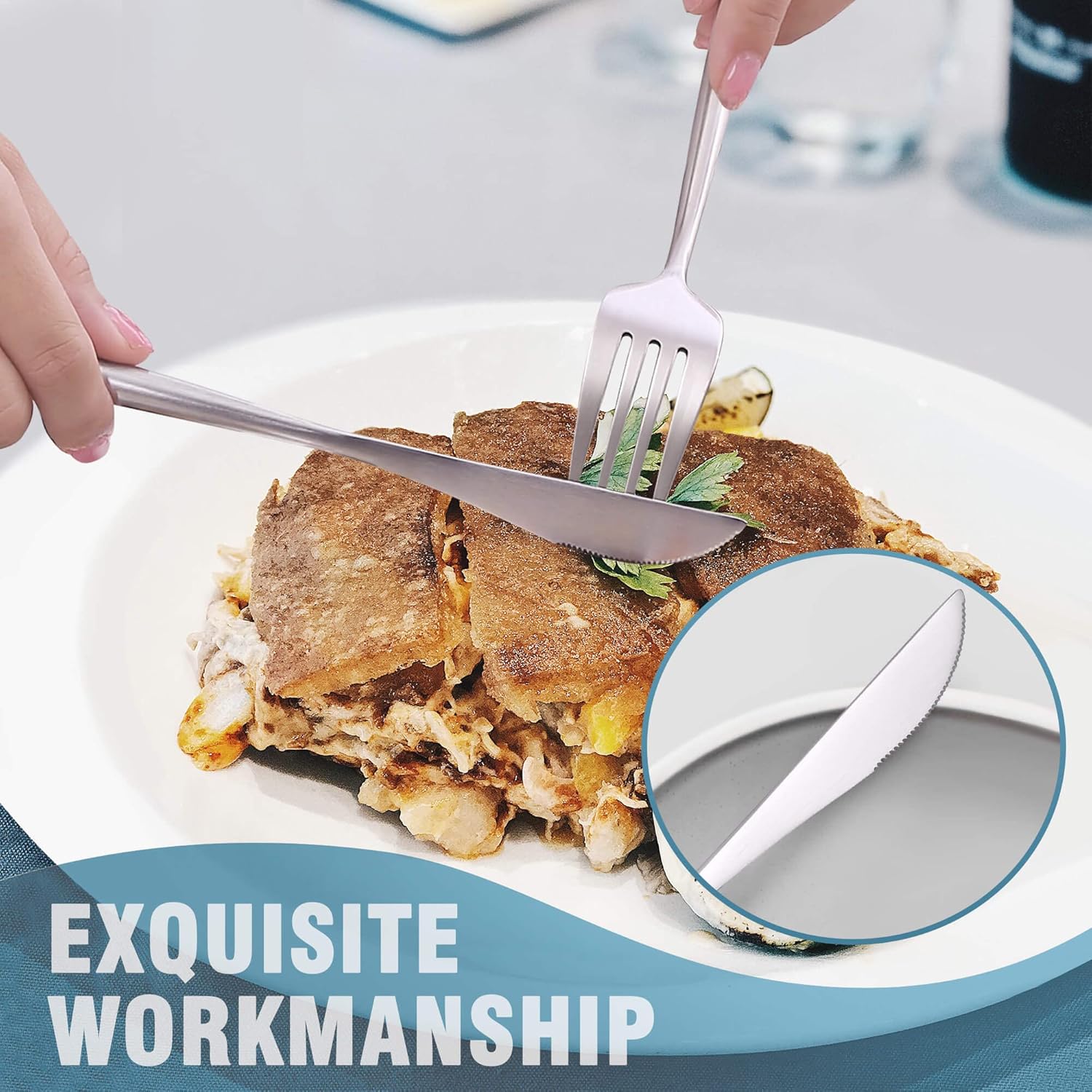 - MODERN DESIGN : The cutlery set is modern and luxury appearance can be a good match for your existing dinnerware set and elevate everyday meals into a fine dining experience