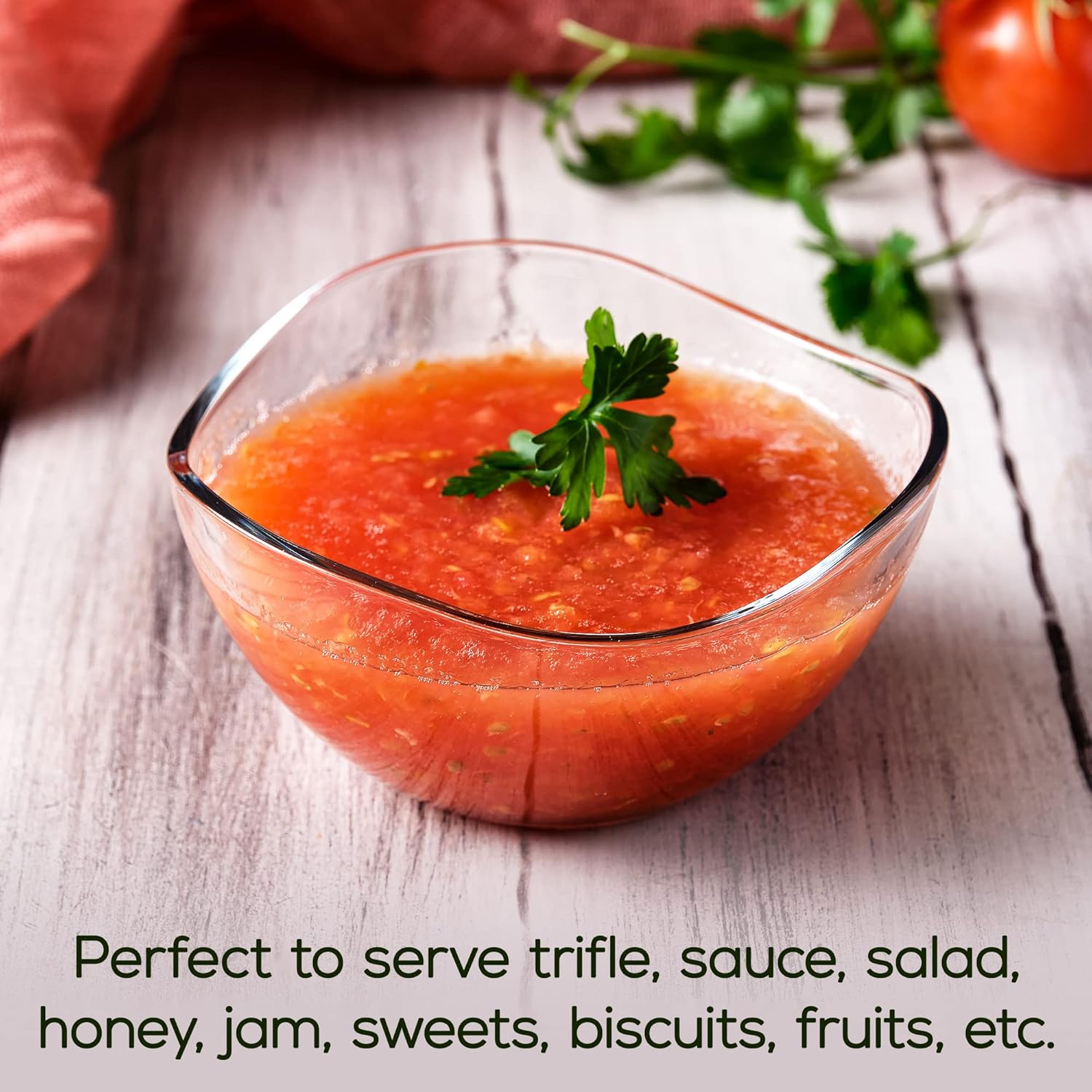 - MULTI-USE BOWL SET of 6: These perfectly sized 7 ΒΌ oz capacity mini pinch bowls are not only great as measuring ingredient bowls while cooking or baking, but also great for soups, snacks, side dishes, fruit salads, yogurt parfaits, trifle, oatmeal, cereal with milk, yogurt, desserts, and nuts. Perfect to serve honey, jam, sweets, biscuits, and fruits at home or at an event