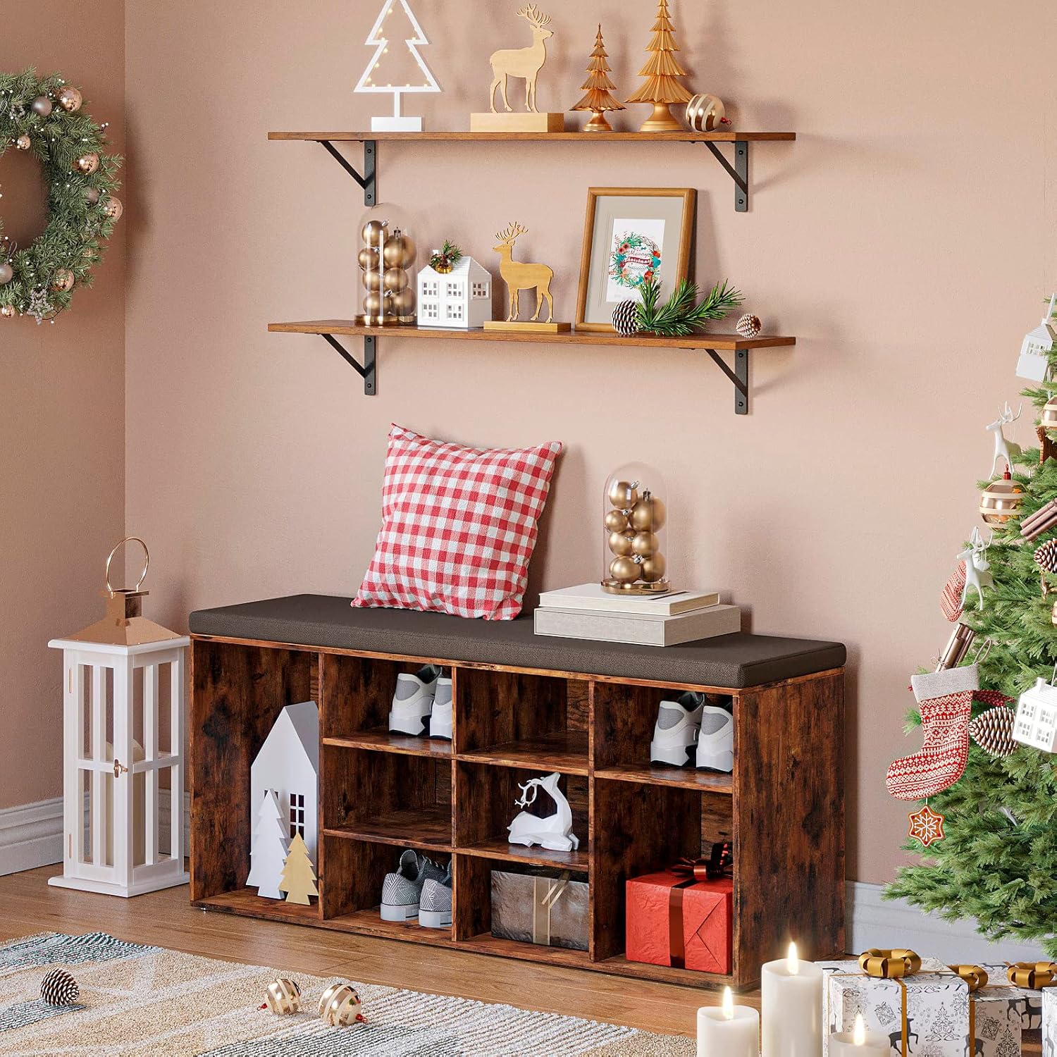 - ăEasy to AssembleăEasy-to-read instructions give you a step-by-step guide. Accompanying tools and numbered accessories make installation quick and easy. The diagonal bar of the rustic shelf will not hinder the installation, every hole can be easily reached by drills
