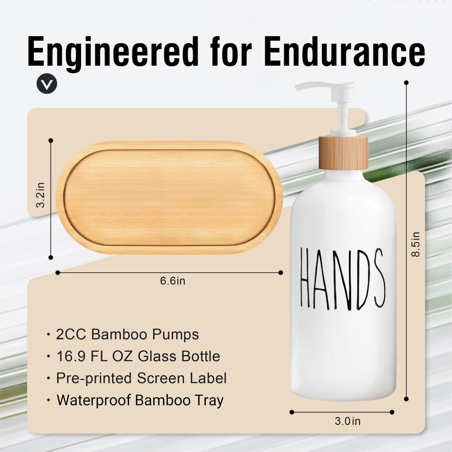 - EXCEPTIONAL QUALITY - The dish and hand soap dispenser set is made of quality glass, matched with a bamboo soap dispenser pump and bamboo dish soap tray. This is a kitchen accessories decor that can make you feel nice.