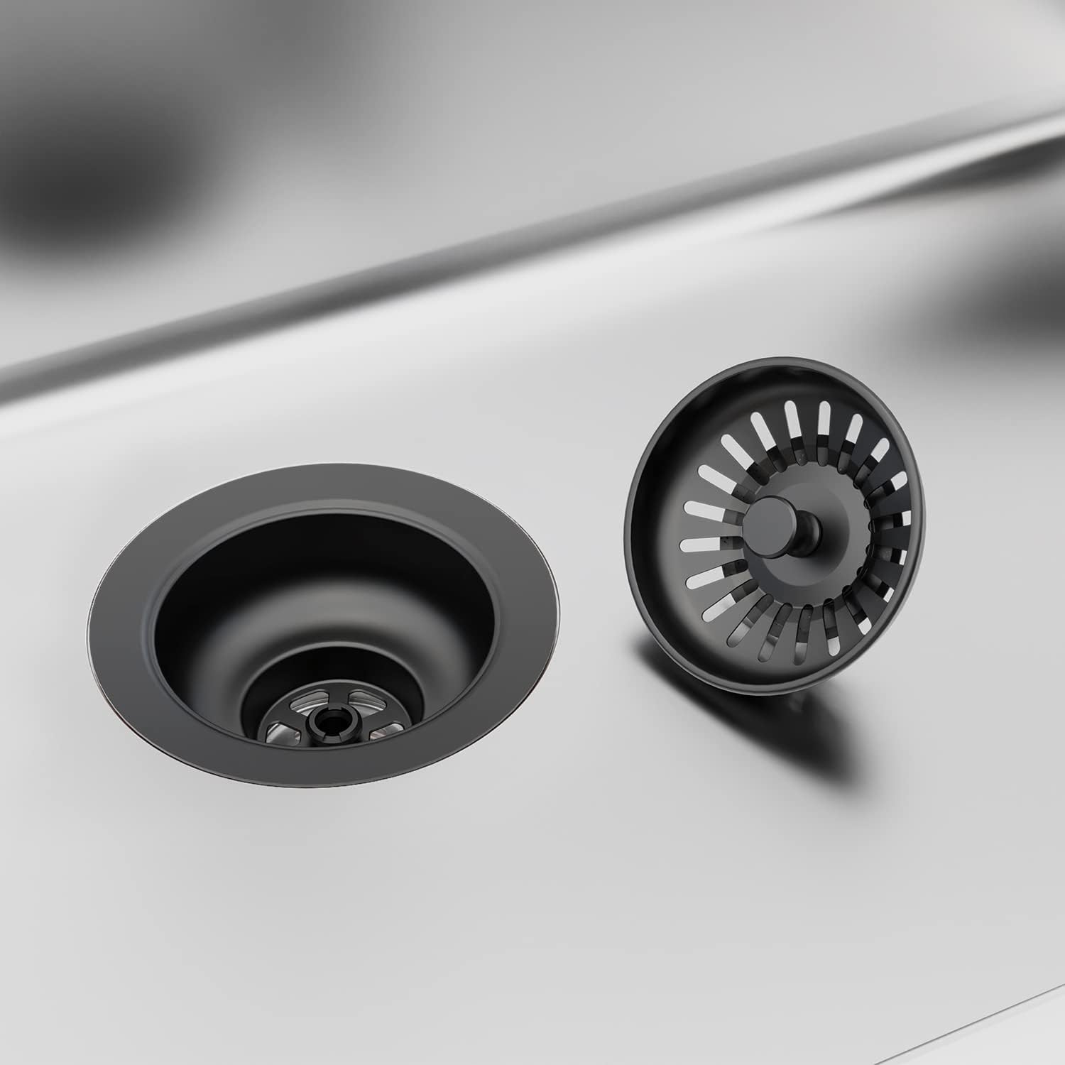 KONE Sink Drain Assembly, Kitchen Sink Drain Strainer Kit with Removable Strainer Basket Stopper, Universal fit USA Home/Commercial 3-1/2 Inch Standard Sink Drain Hole (Matte Black)