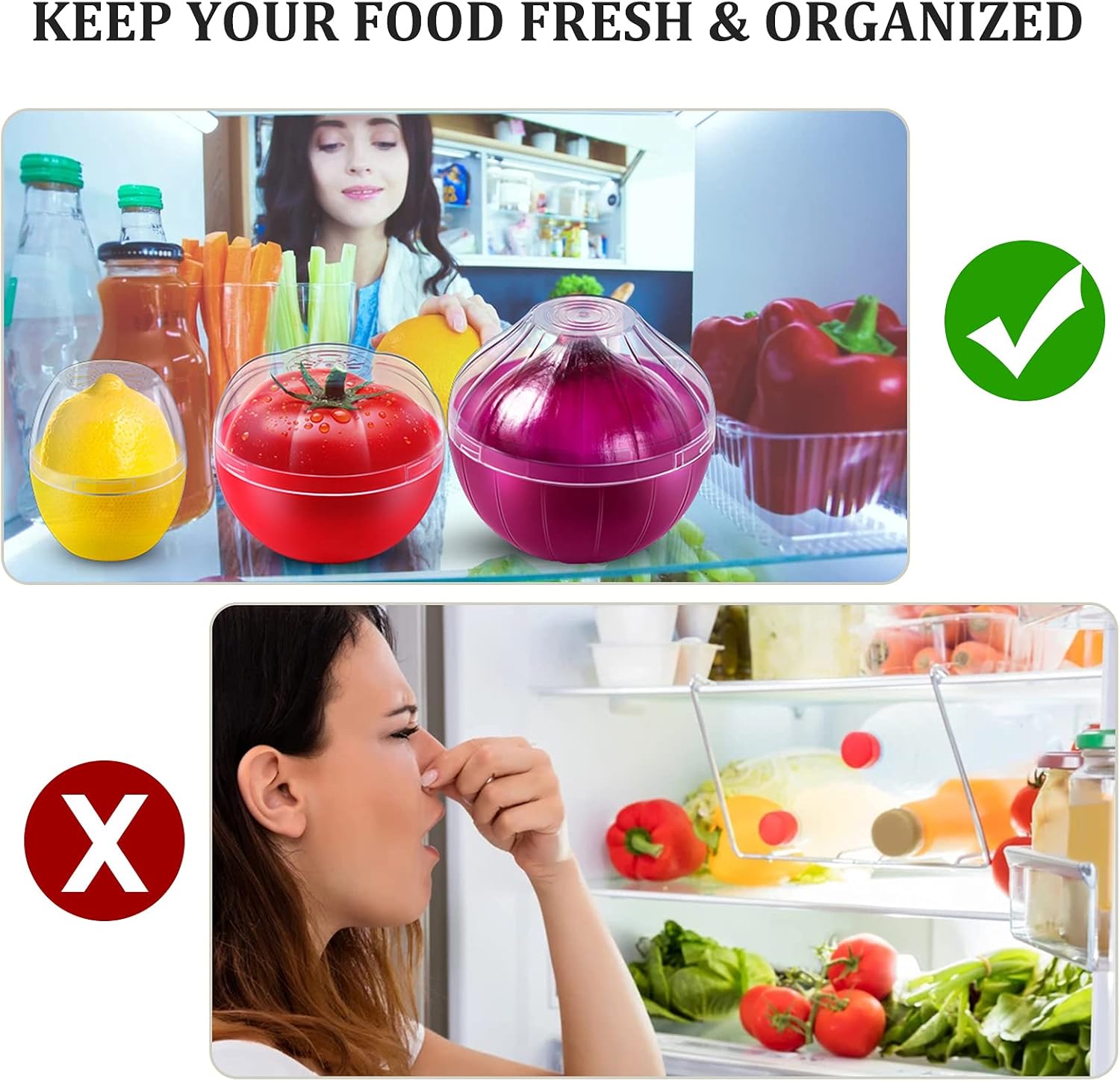- 🧅【CUTE DESIGN WITH TRANSPARENT LID】The fruit and vegetable savers are shaped with their own appearance and vibrant color, and the lid is transparent, which is easy for you to identify the contents. BPA free, they are practical and safe kitchen tools for daily use.