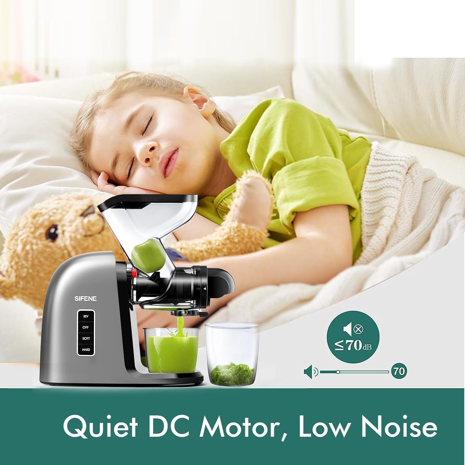 - POWERFUL AND QUIET OPERATION - Equipped with a high-powered DC motor, our juicer ensures efficient juicing while maintaining a noise level under 65db.