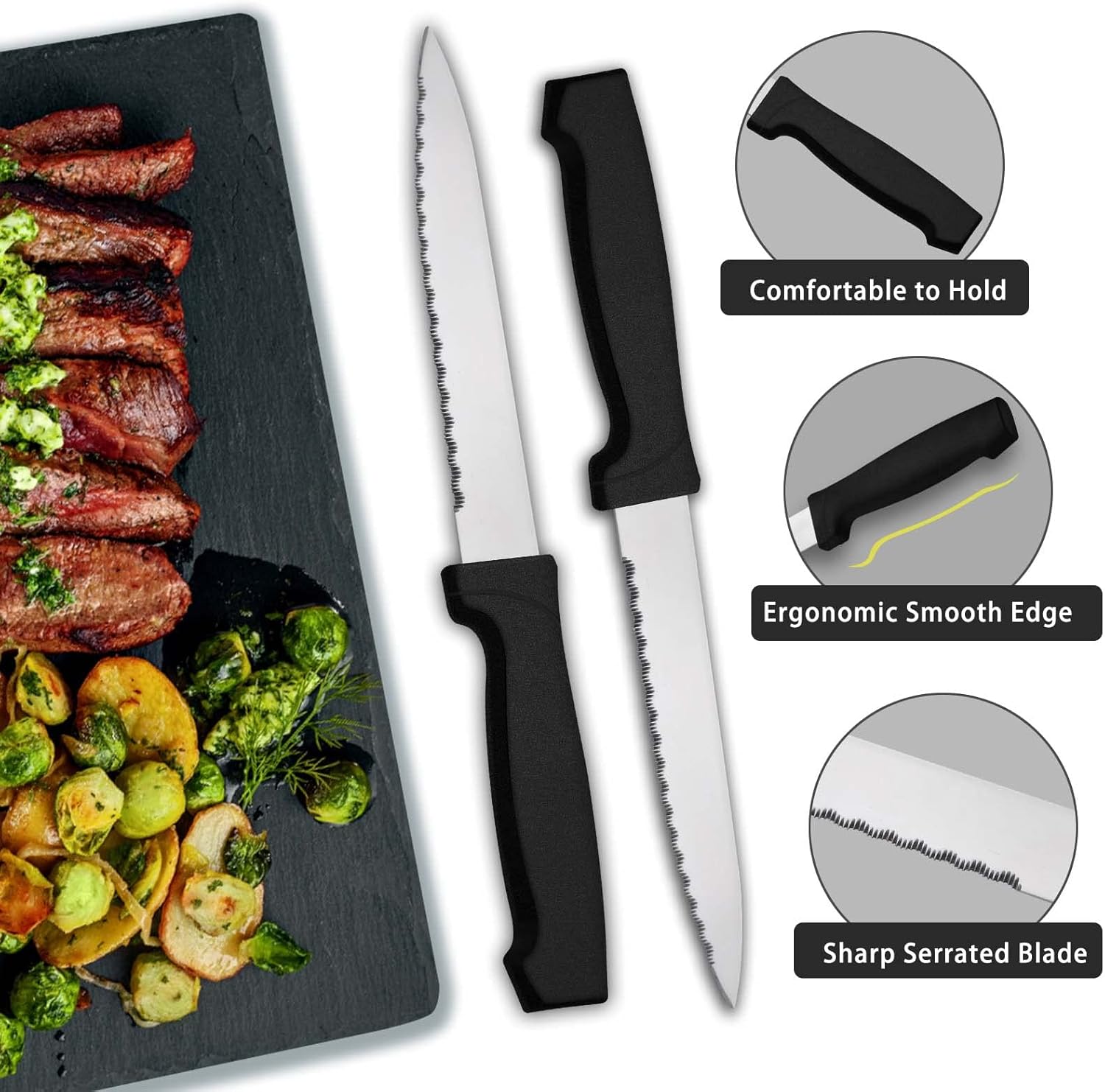 - 【24-Pieces Flatware Set For 4】Our 24 pieces silverware set contains 4 dinner spoons, 4 teaspoons, 4 dinner forks, 4 salad forks, 4 dinner knives and 4 extra steak knives, so you don't have to buy steak knives separately. The cutlery set is also an irreplaceable dining tool whether it is for daily use or for preparing dinners or parties