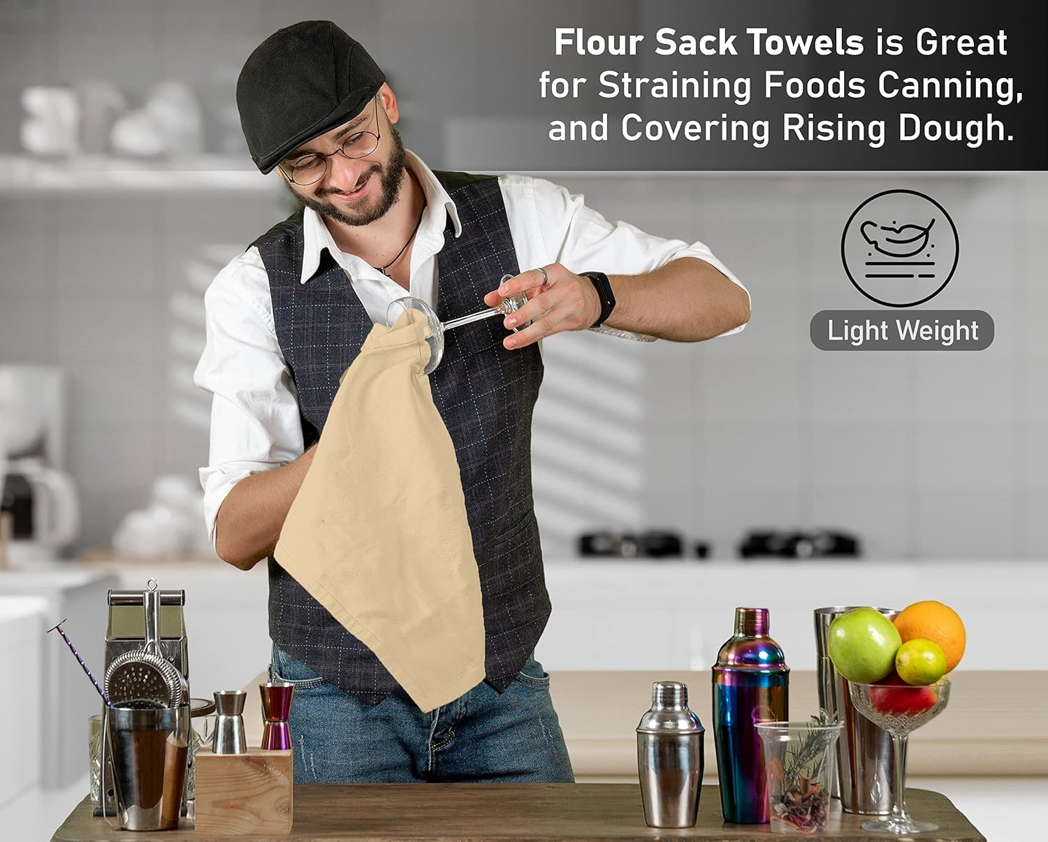 - Premium Quality: Our Flour Sacks Towels are made with 100% Ring Spun Cotton Fabric which is Soft, Quick Drying and Highly Absorbent. Tea Towels are Professionally Hemmed and edges are carefully graded.